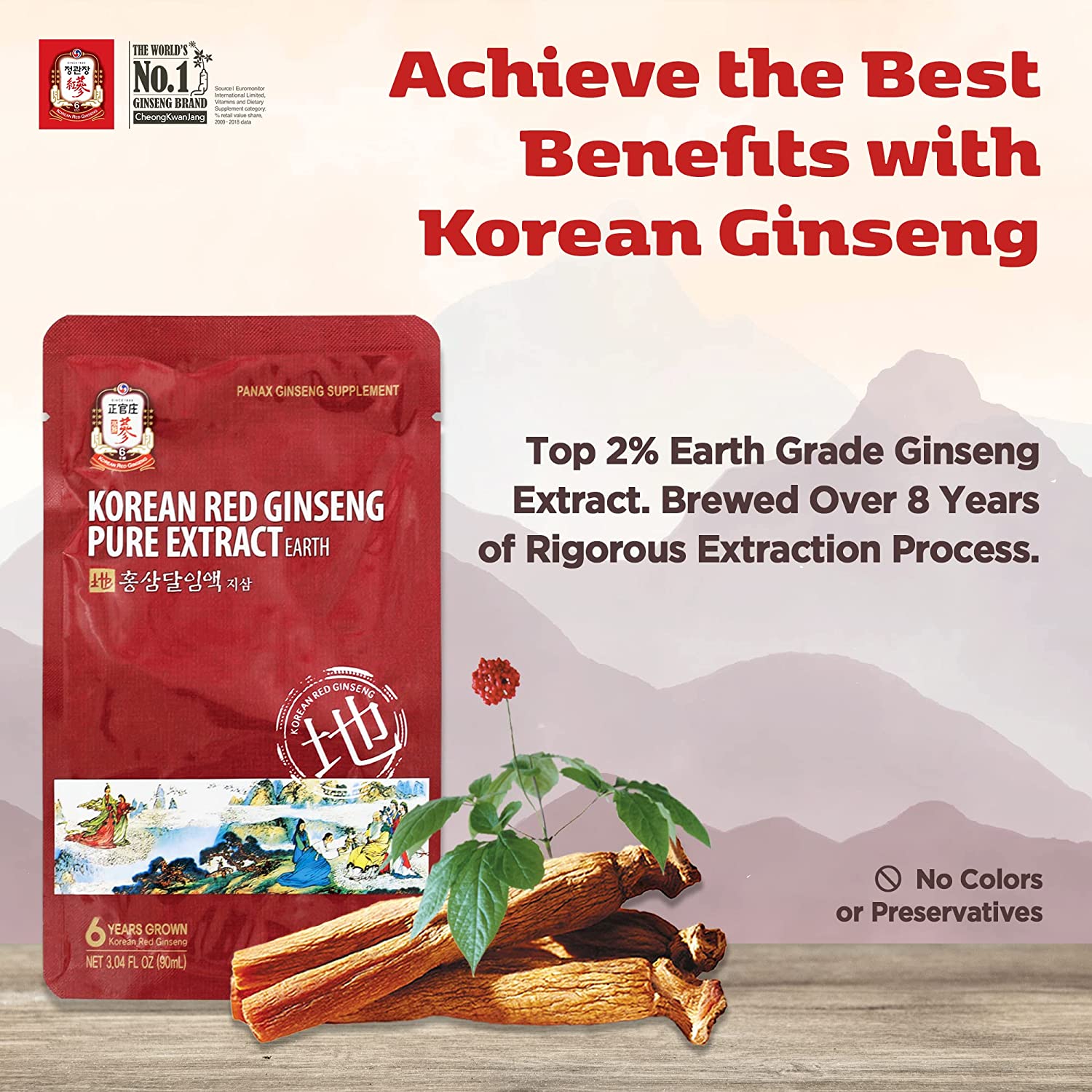 CheongKwanJang [Korean Red Ginseng Pure Extract Earth 100% 6-Year-Old Asian Panax Ginseng Roots with Top 2% Premium Grade Ginseng, Boost Immune System, Energy - 30 Pouch