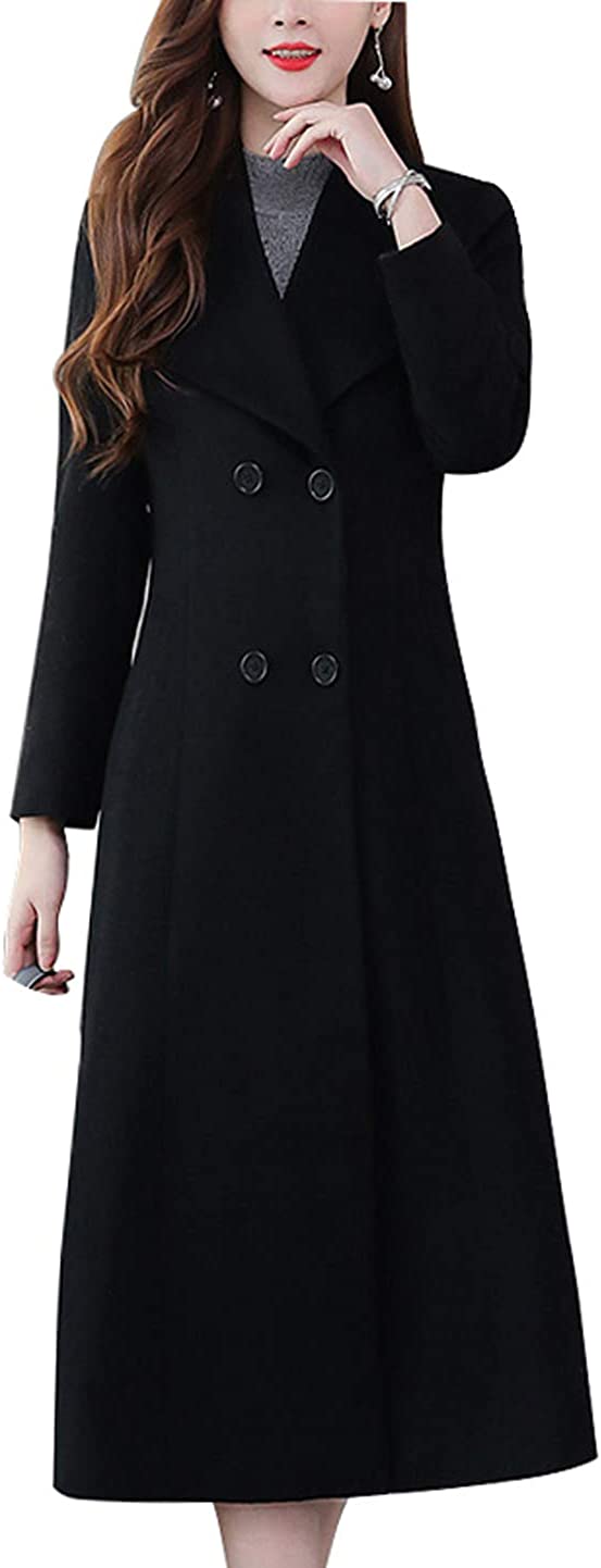 chouyatou Women's Chic Shawl Collar Work Double Breasted Maxi Long Wool Pea Coat