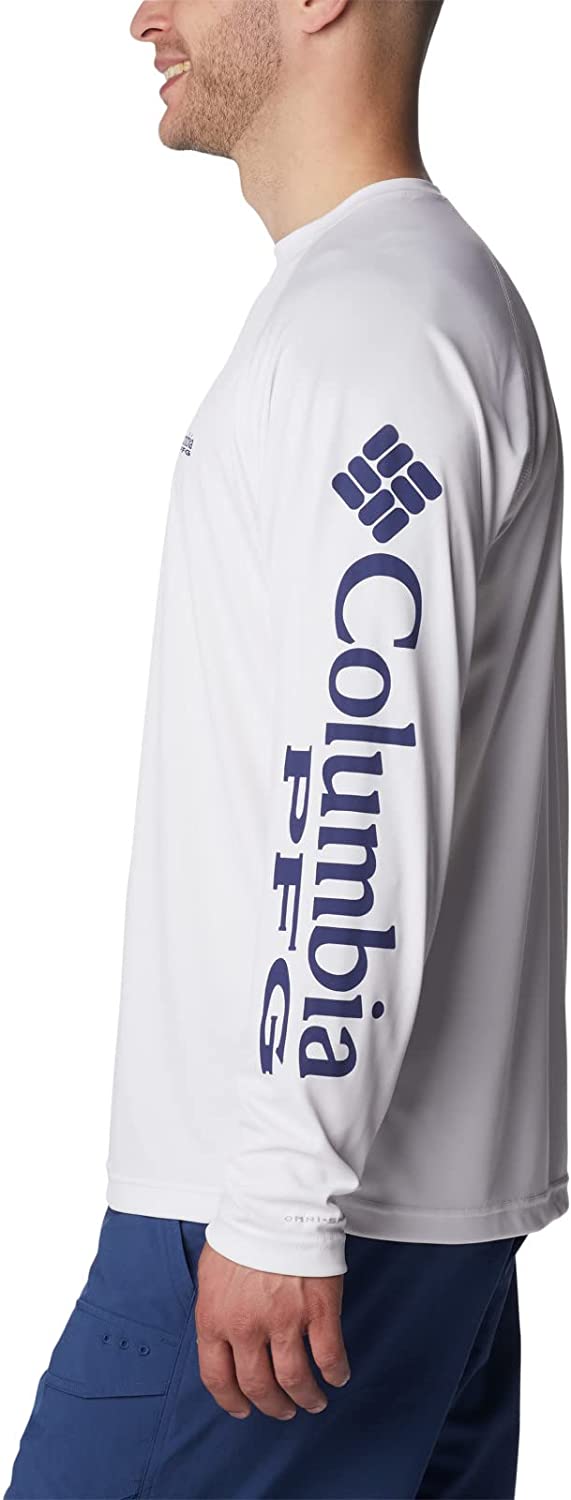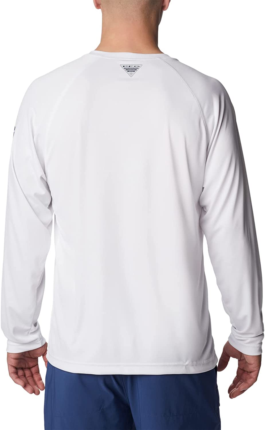 The polyester interlock construction of our PFG Terminal Tackle Long Sleeve Shirt offers full coverage against harmful midday sun with UPF 50 protection. It’s also lightweight and quick drying, making it the perfect solution for staying cool while protecting your skin out over any highly reflective water. It’s the ultimate day-out-on-the-boat staple… lightweight, durable, go-to gear. This technology featured long sleeve Tee is necessity for any day out on the ocean, lake, or river. Made up of a combination of Columbia’s signature protection fabrics: UPF 50 works to block and shield you from harmful UVA and UVB sun rays known to cause skin damage, while the advanced wicking fabric works to pull moisture and water away from the skin. You remain cool while our signature PFG logo runs along the sleeve. Columbia offers this fishing shirt in multiple staple colors and sizes. Available in extended sizing. Regular Fit. To ensure the size you choose is right, utilize our sizing chart and the following measurement instructions: For the sleeves, start at the center back of your neck and measure across the shoulder and down to the sleeve. If you come up with a partial number, round up to the next even number. For the chest, measure at the fullest part of the chest, under the armpits and over the shoulder blades, keeping the tape measure firm and level.