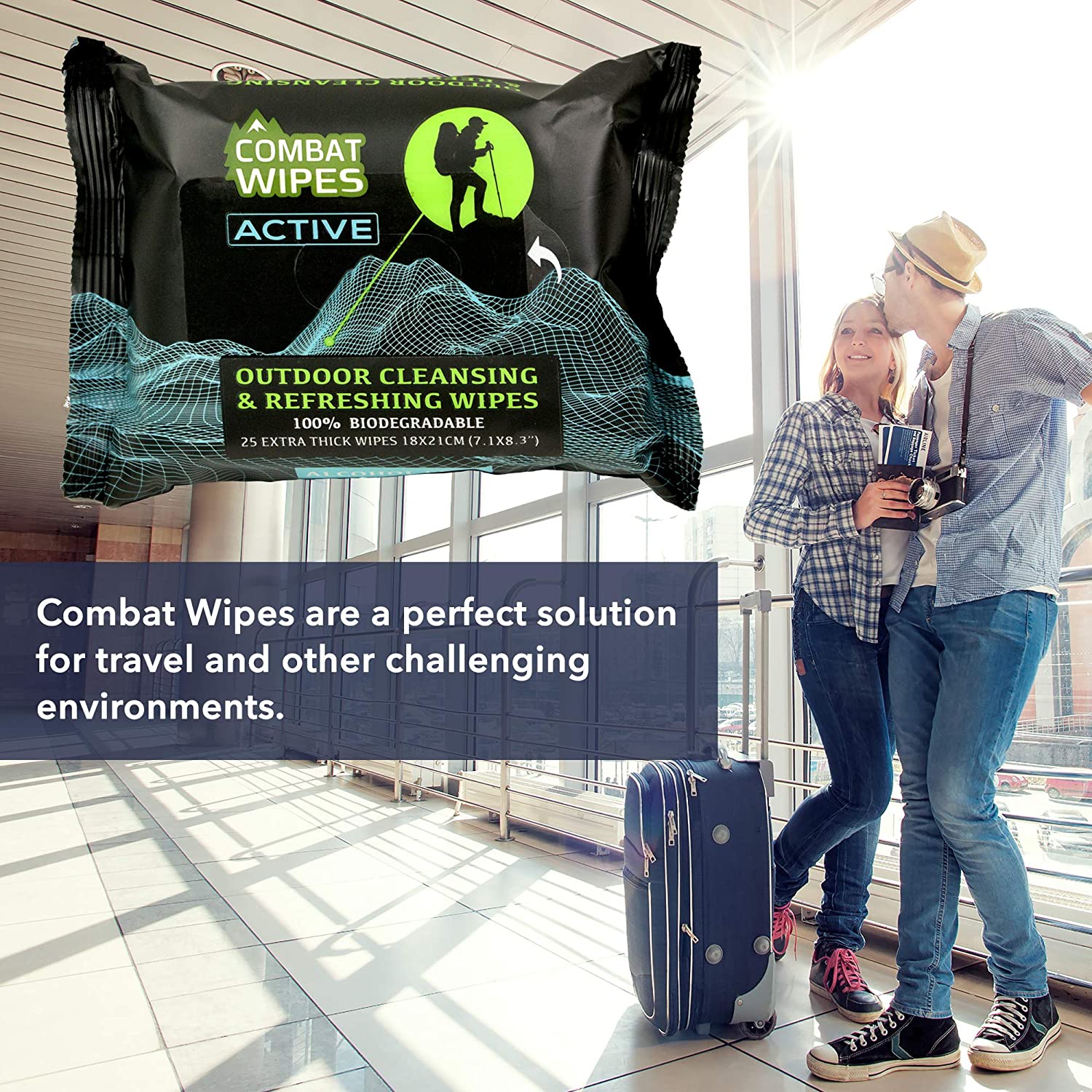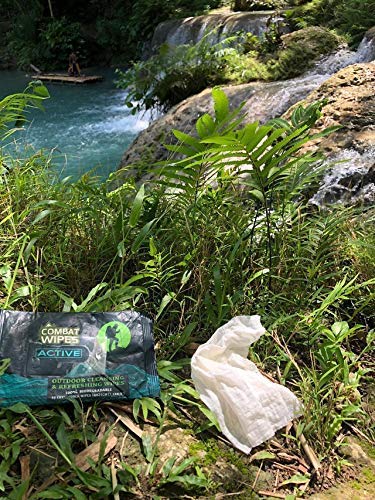 Combat Wipes ACTIVE Outdoor Wet Wipes | Extra Thick, Ultralight, Biodegradable, Body & Hand Cleansing/Refreshing Cloths for Camping, Gym & Backpacking w/ Natural Aloe & Vitamin E (25 Wipes)