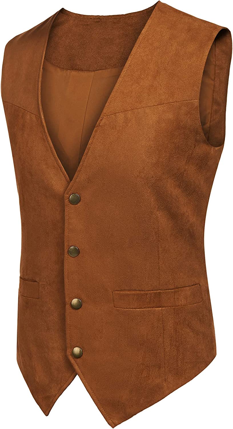 COOFANDY Men's Suede Leather Suit Vest Casual Western Vest Jacket Slim Fit Vest Waistcoat