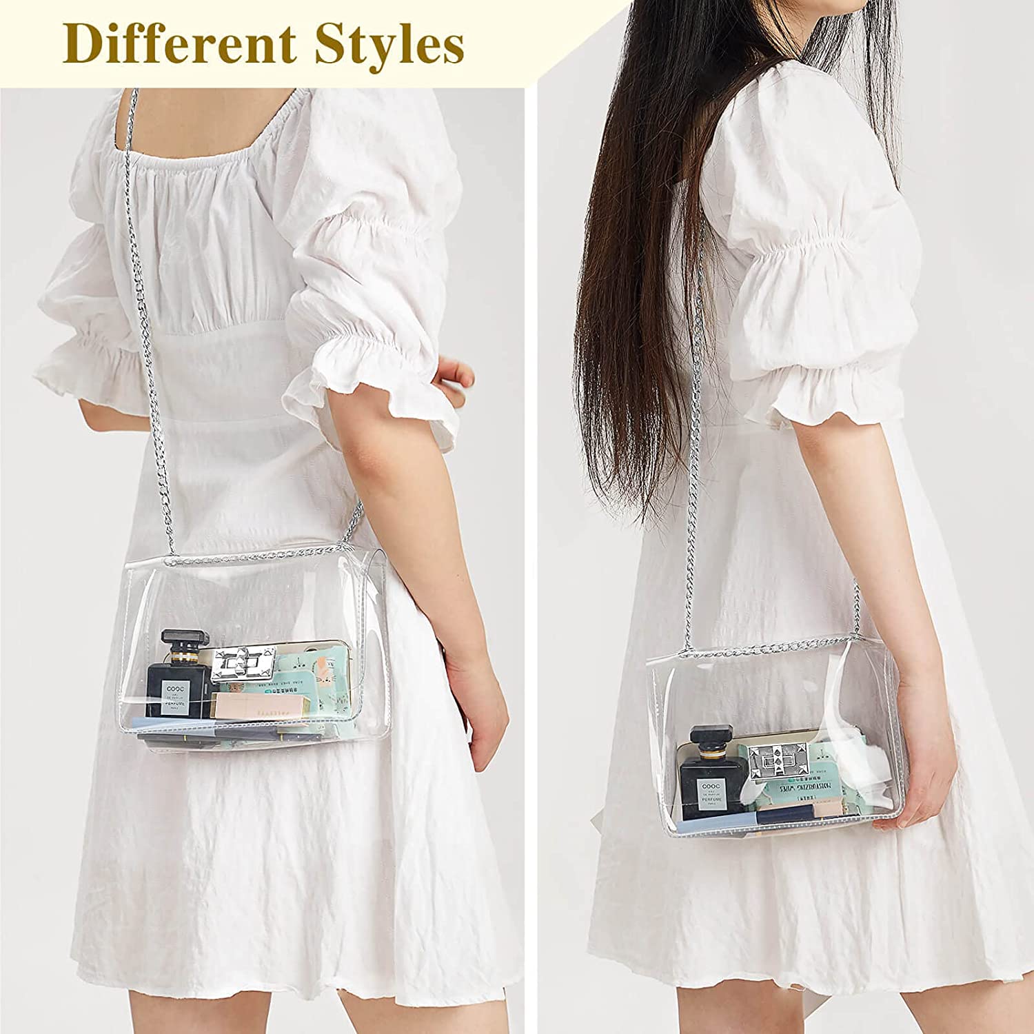 - Clear purse with fashion gold-tone or silver-tone hardware, stylish and trendy