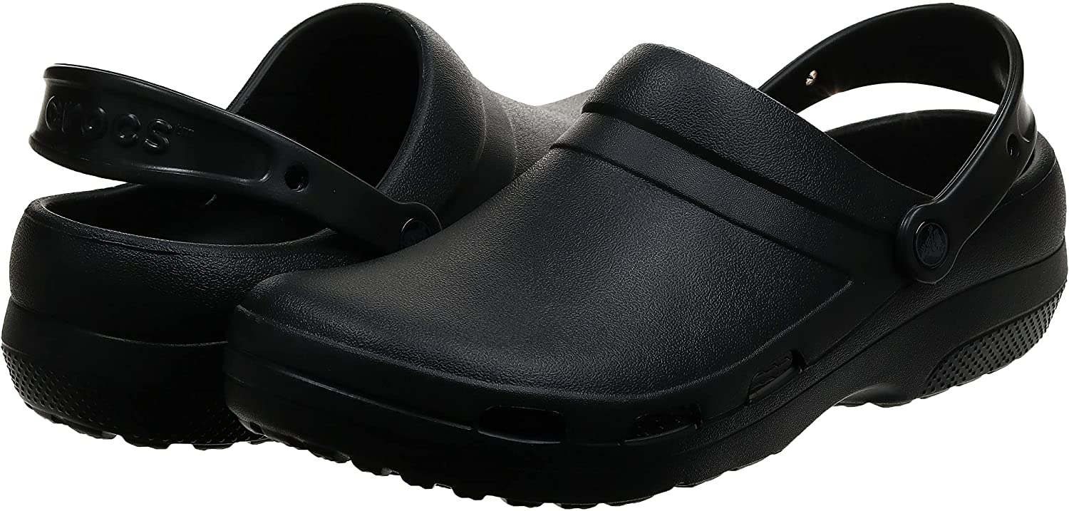 Do your shoes live up to your career specialty? Everything that makes Crocs so comfortable works overtime in these clogs from the Crocs At Work Collection. This style includes thicker construction at the toes and metatarsal areas, increased arch support, and nubbed Croslite foam footbeds for a massage-like experience with every step.