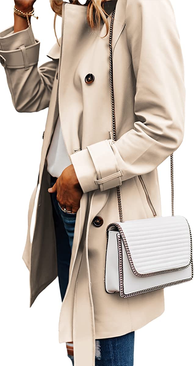Danedvi Women Fashion Casual Elegant Lapel Solid Button Down Blazer Work Wear Office Long Type Windbreaker Trench Coat