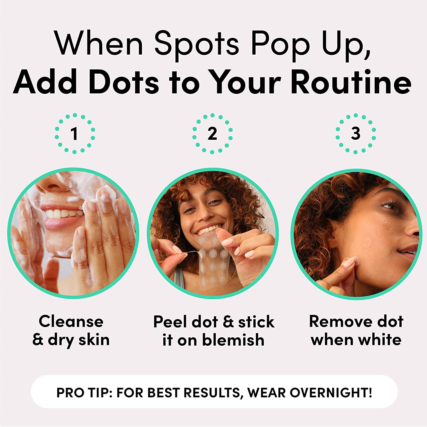 Dots for Spots Pimple Patches – Easy to Use, Translucent, Hydrocolloid Acne Patch Treatment for Spots & Blemishes - Face, Nose, Chin, Back, & Body Zit Stickers - Visible Results, Travel Size, Vegan, &