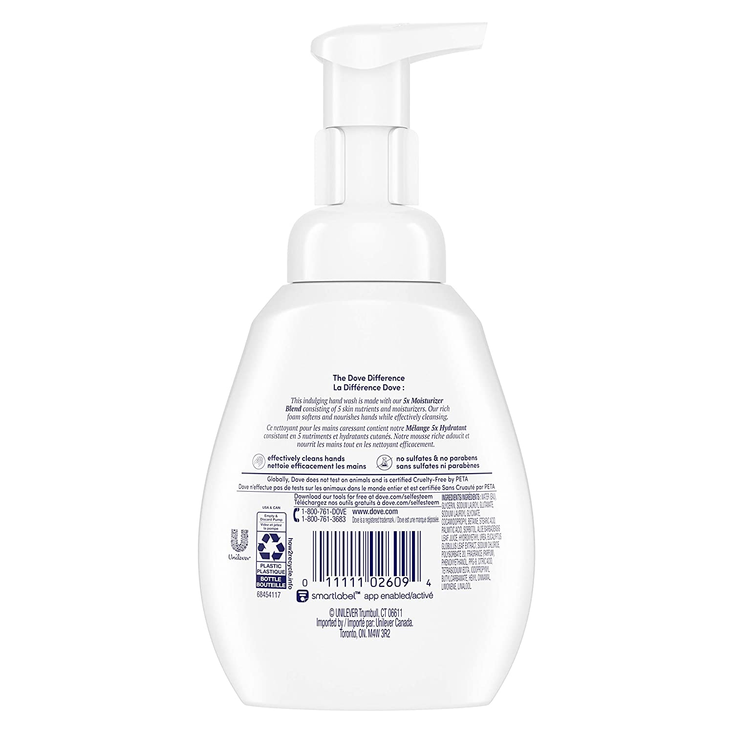 While your average hand soap can cause dry, tight hands, Dove Aloe and Eucalyptus Nourishing Foaming Hand Wash is a great cleanser for dry skin. This gently foaming hand wash offers a rich, indulgent texture that pampers your hands, while effectively washing away dirt and germs. Made with our 5X Moisturizer Blend consisting of five skin nutrients and moisturizers, this hand wash goes beyond cleansing to keep hands soft and nourished, as you wash your hands for the recommended 20 seconds. Dove foaming hand wash is gentle on hands and made with plant-based moisturizers for lasting nourishment. What’s more, this unique formulation includes no sulfates and no parabens. When you buy Dove hand wash or Dove body and bath products, you can also be assured that you're caring for your hands with products that have been certified Cruelty-Free by PETA. Globally, Dove does not test on animals and is certified Cruelty-Free by PETA. Dove is also on a mission to help the next generation of women develop a positive relationship with the way they look, by reaching over 1/4 of a billion young people around the world with self-esteem education by 2030. With Dove, let every hand wash truly be an act of care.