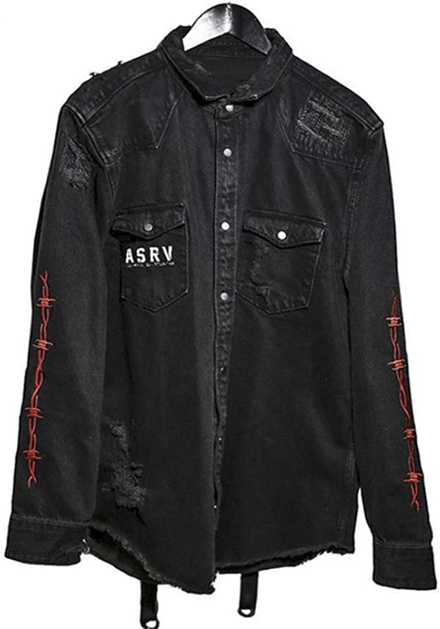 ebossy Men's Skull/Cobra Print Hipster Hip-Hop Distressed Frayed Denim Jean Jacket