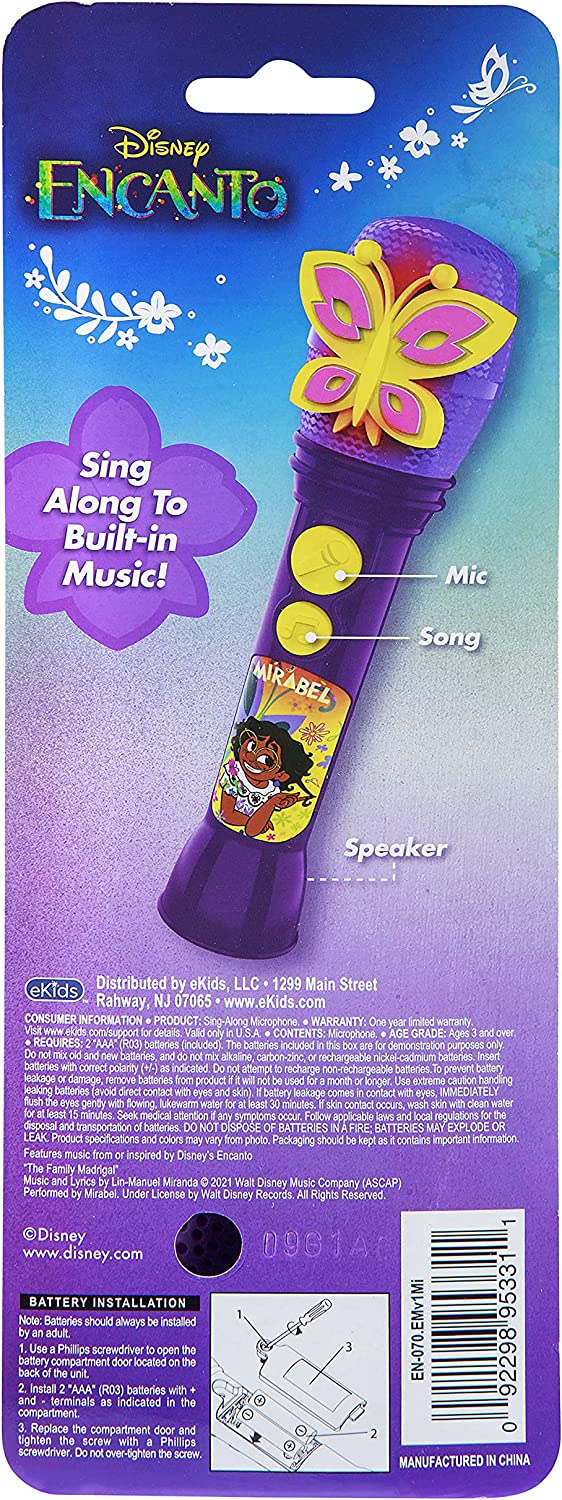 eKids Disney Encanto Toy Microphone for Kids, Built-in Music and Flashing Lights for Fans of Disney Toys for Girls