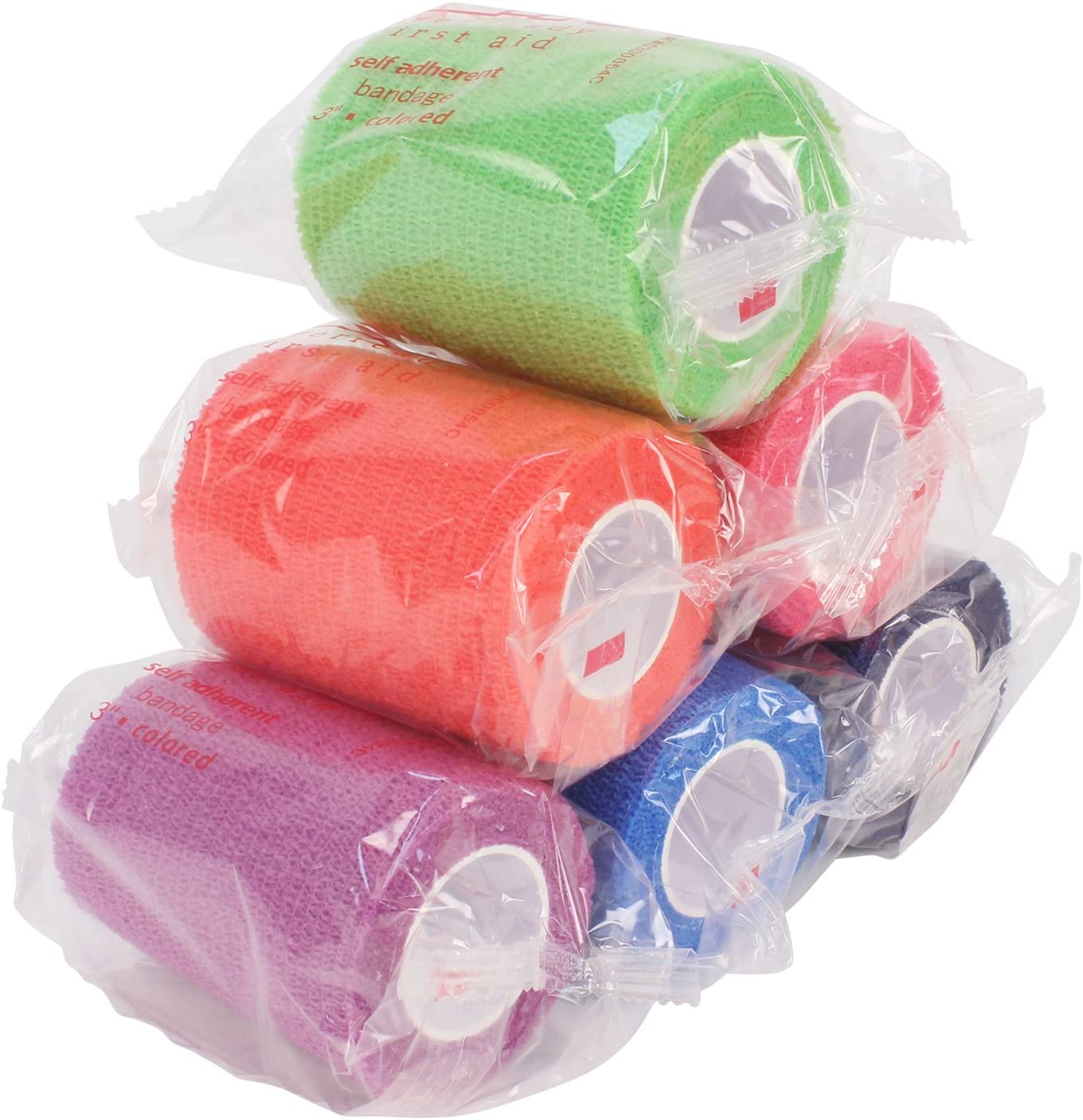 Ever Ready First Aid Self Adherent Cohesive Bandages 3" x 5 Yards - 6 Count, Rainbow Colors
