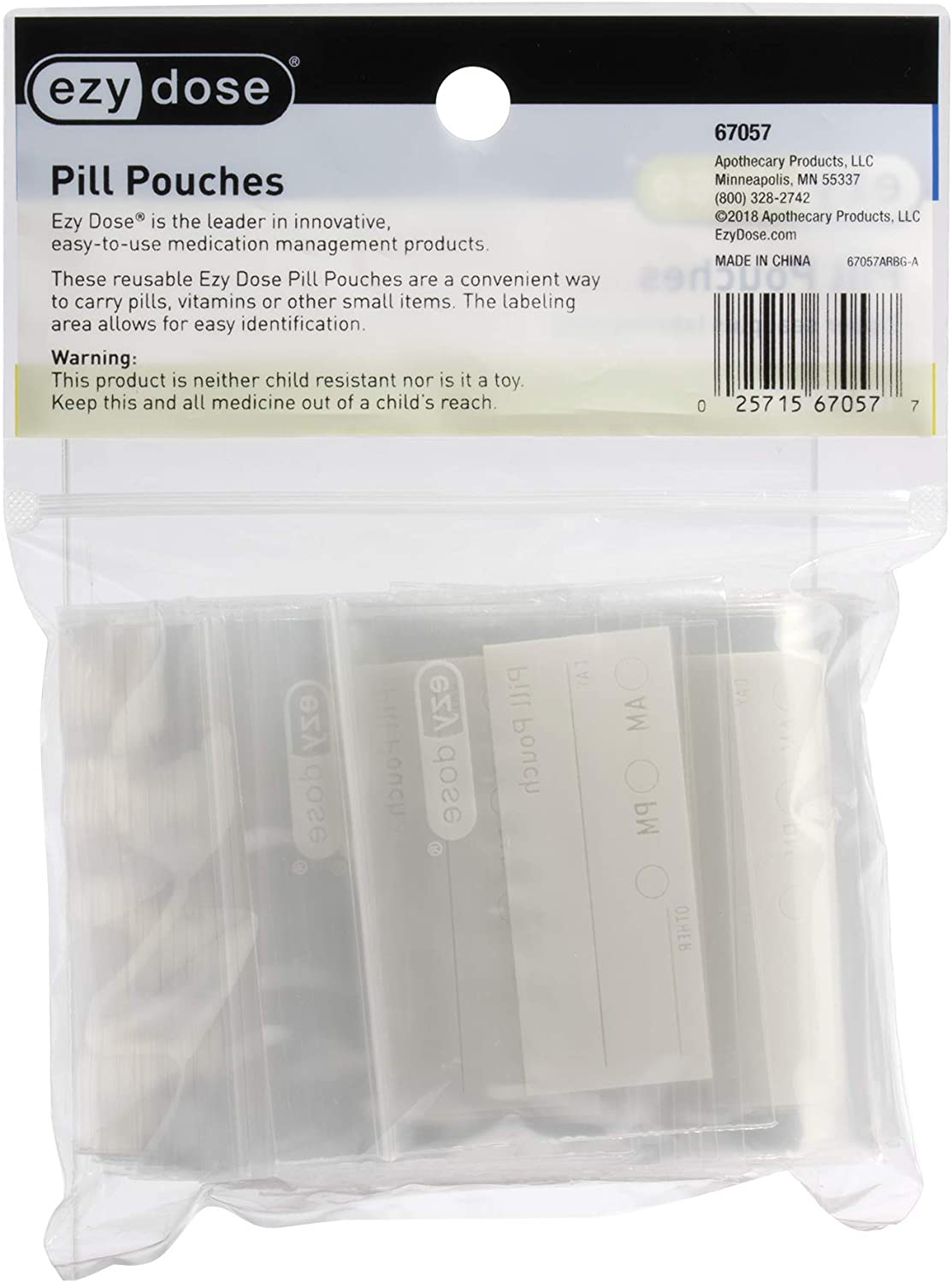 Ezy Dose Disposable Pill Pouches 100ct - Pill Pouches - These 100 Pill Bags are Made of Clear, Durable Polyethylene and are Perfect for Medication Storage and Travel. Zipper-seal pouches have a write-on labeling block for easy labeling.