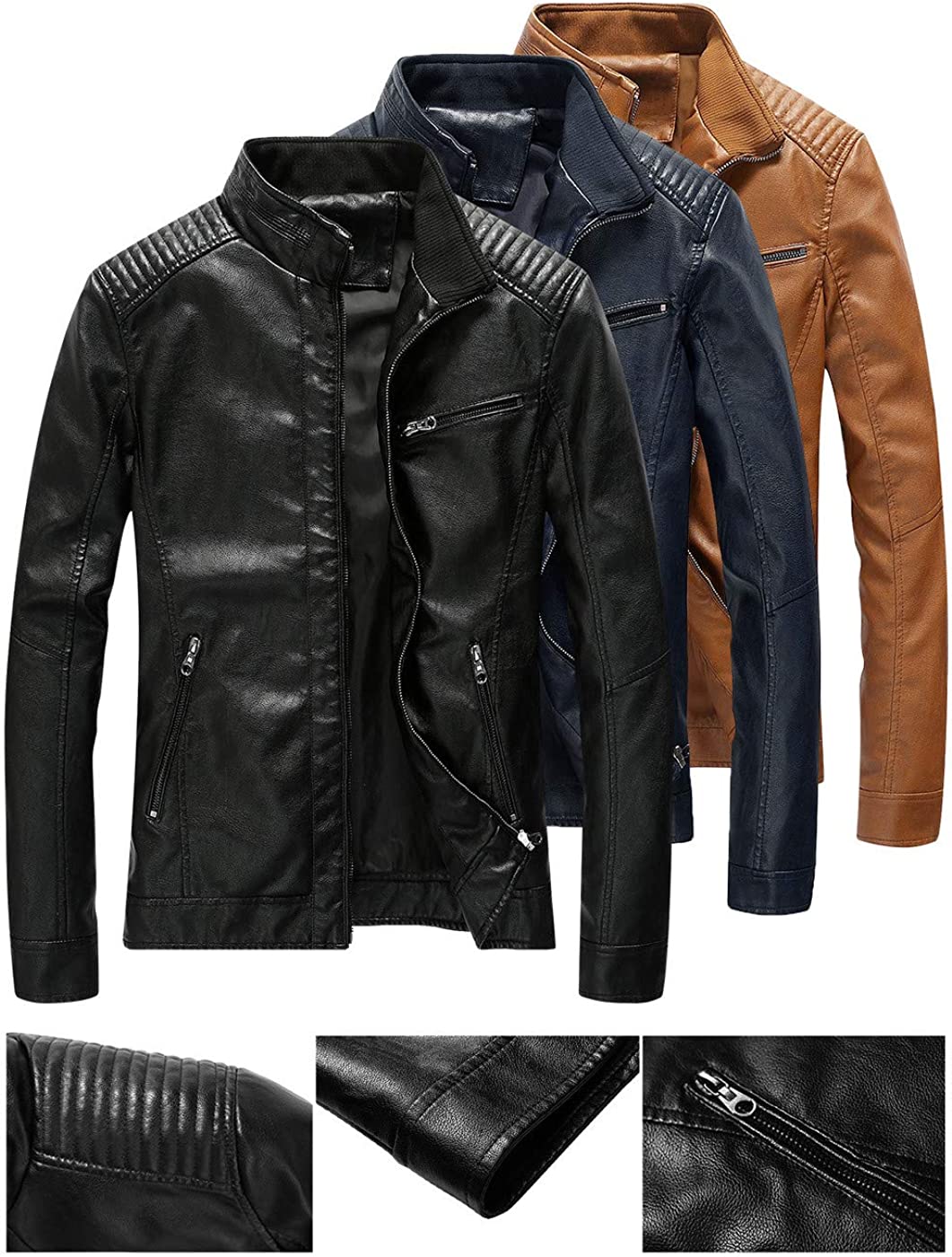 Fairylinks Leather Jacket Men Black Slim Fit Motorcyle Lightweight