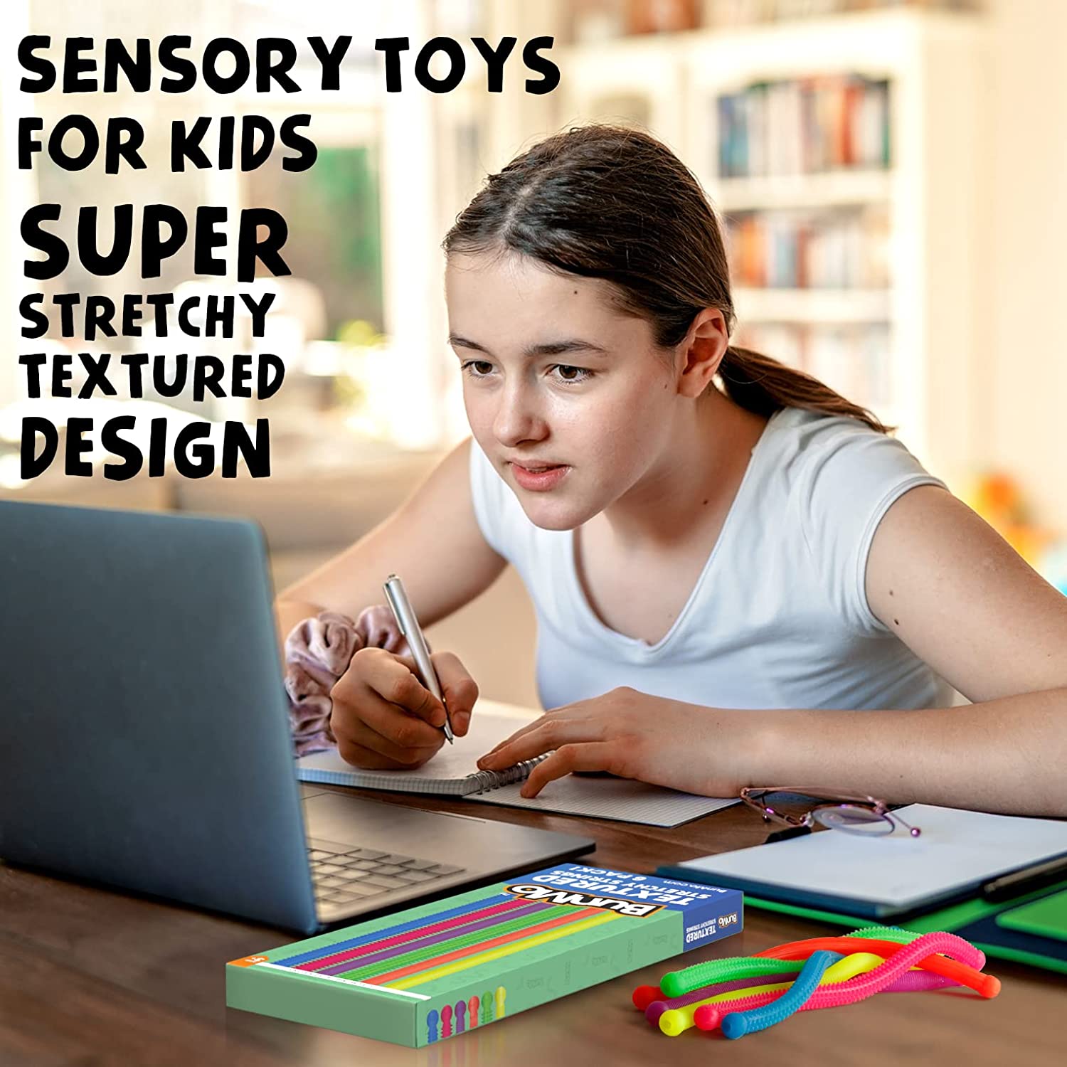 Fidget Toys and Textured Sensory Toys by BUNMO - Textured Stretchy Strings Fidget Toy. Bumpy Fidget Toys for Adults and Kids Make Anxiety Toys, Autism Sensory Toys