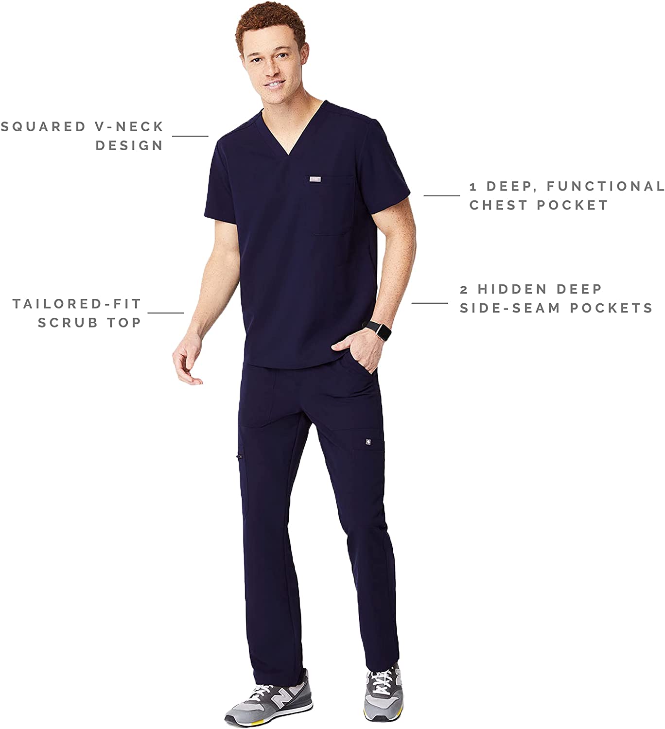 FIGS Chisec Scrub Tops for Men – Tailored Squared V-Neck Fit, 3 Pockets, 4-Way Stretch, Anti-Wrinkle, Moisture-Wicking