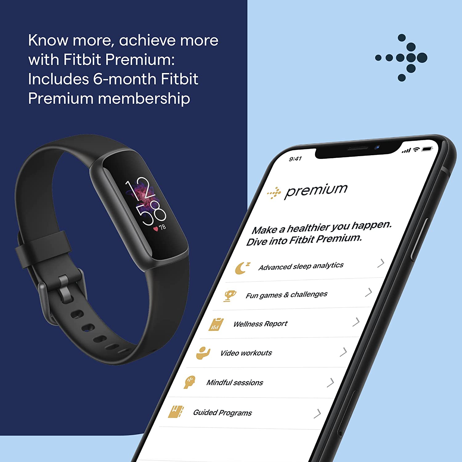 Meet Fitbit luxe-a fashion-forward fitness & wellness tracker with the motivation to give your body and mind the healthy boost it deserves. A chic bracelet design, on-wrist tracking and a month Fitbit Premium trial for new and returning premium users make Luxe the must-have wardrobe essential. From tracking sleep and activity to giving your mind A much-needed moment of calm, Luxe shines A light on your beauty, outside and in.