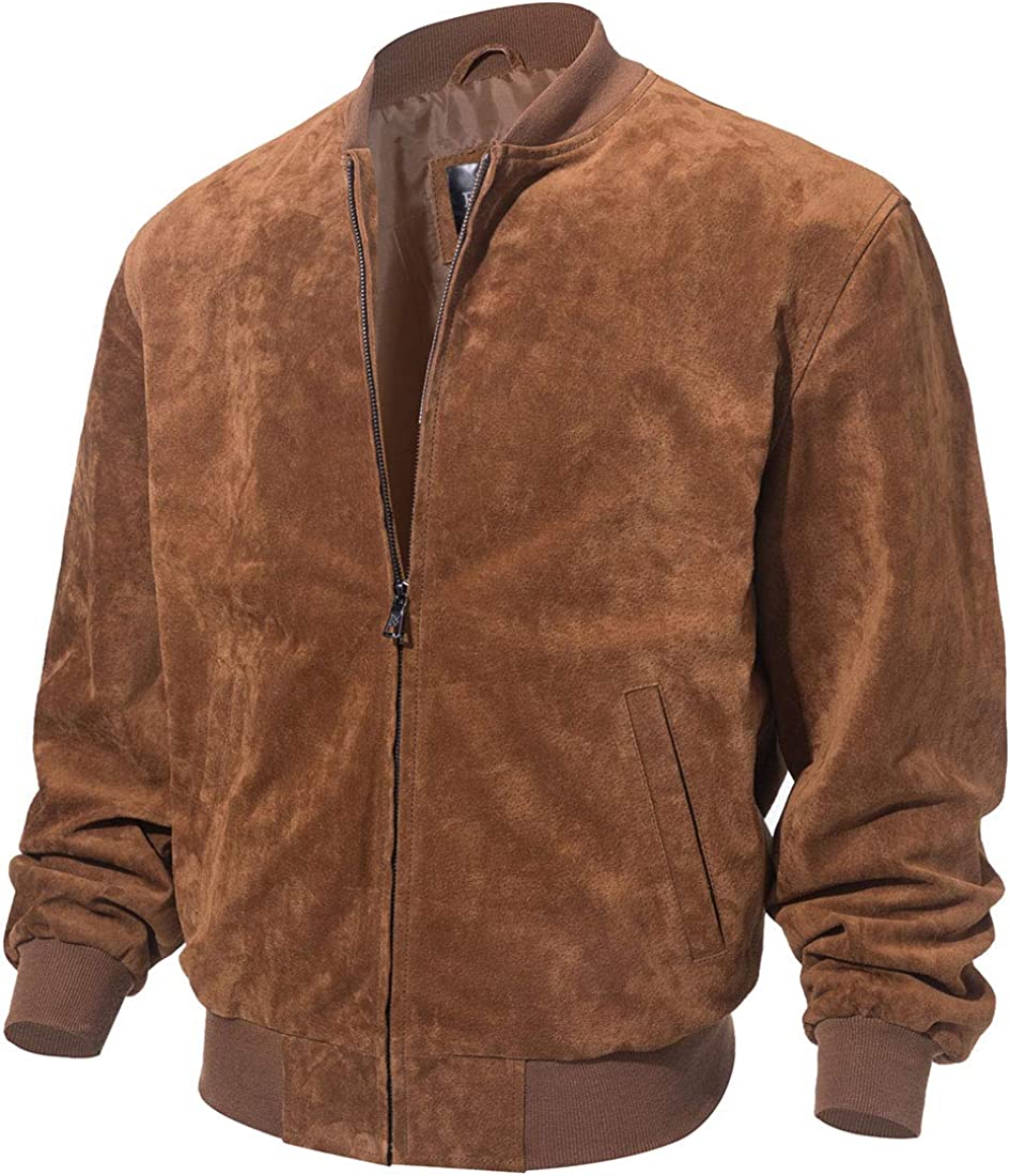 FLAVOR Men's Leather Baseball Bomber Jacket Vintage Suede Pigskin