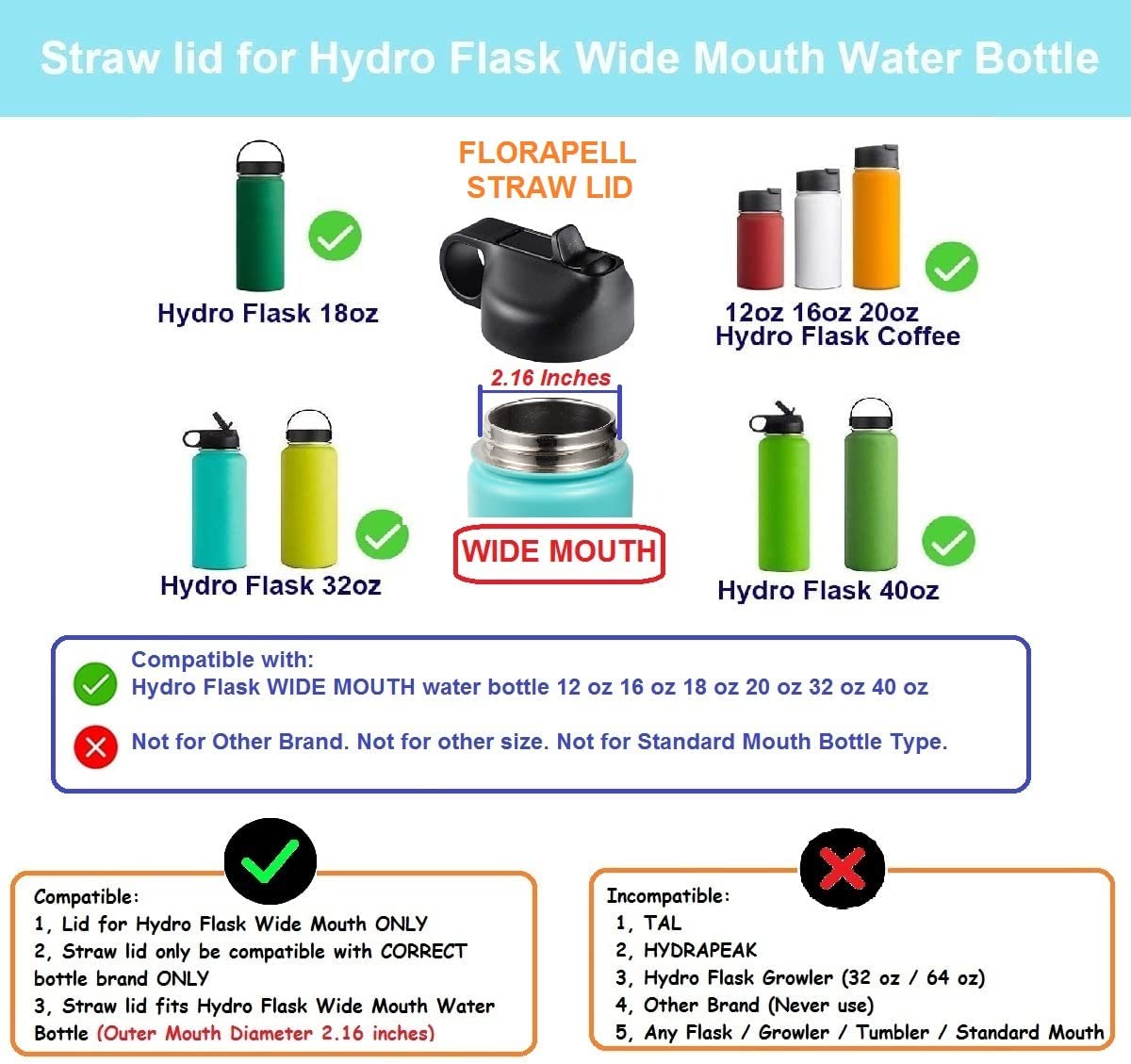FLORAPELL straw lid for hydro flask wide mouth water bottles