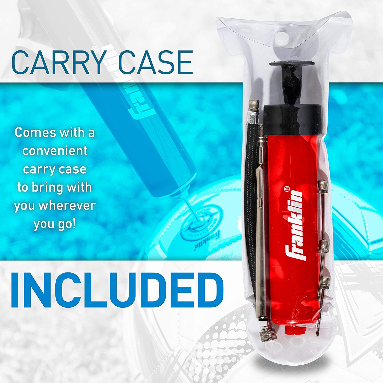 Keep your sports balls inflated and ready to play with Franklin Sports' Ball Pump Kit! Nothing is worse than a flat basketball or soccer ball when you're ready to get the game started. But with this complete hand pump kit, you'll have everything you need to keep your sports balls inflated for optimal play. This set comes complete with (1) 7.5" hand pump, (3) inflation needles (1) flexible hose, (1) air pressure gauge, and (1) carry bag to make it easy to bring on the go. Don't let your game fall flat. Bring home one of Franklin Sports' Ball Pump Kits today and bring the bounce back!