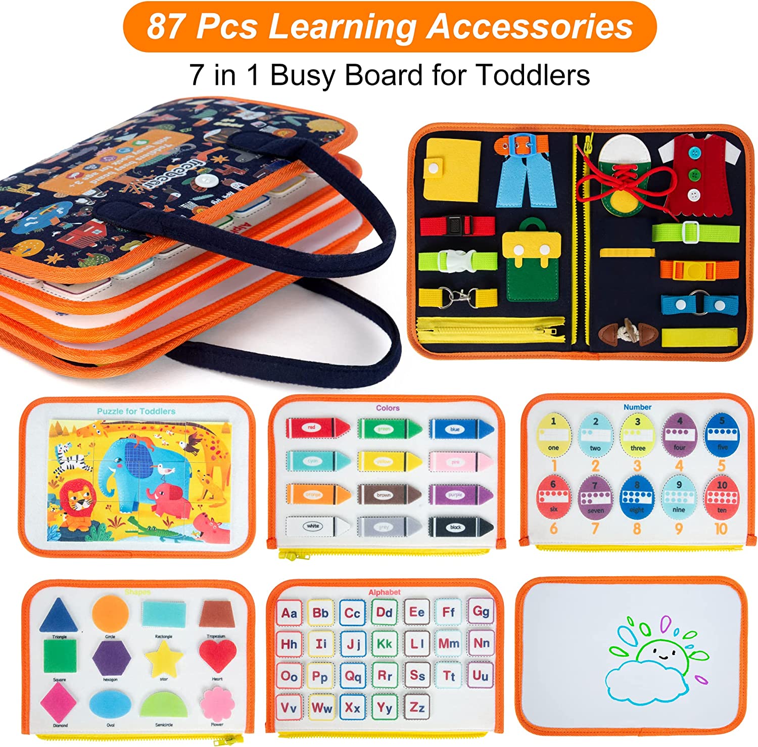 Freebear Busy Board, Toddler Travel Toys, Quiet Book with DIY Page, Sensory Toys for Toddlers 1 2 3, Montessori Toys for Toddler Activities Board, Educational Toys for 1 Year Old Girls Boys Gift