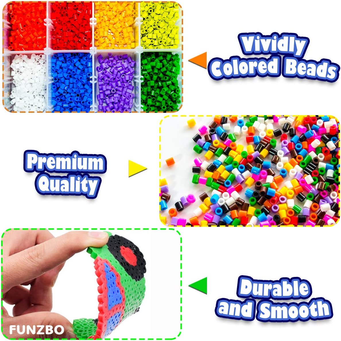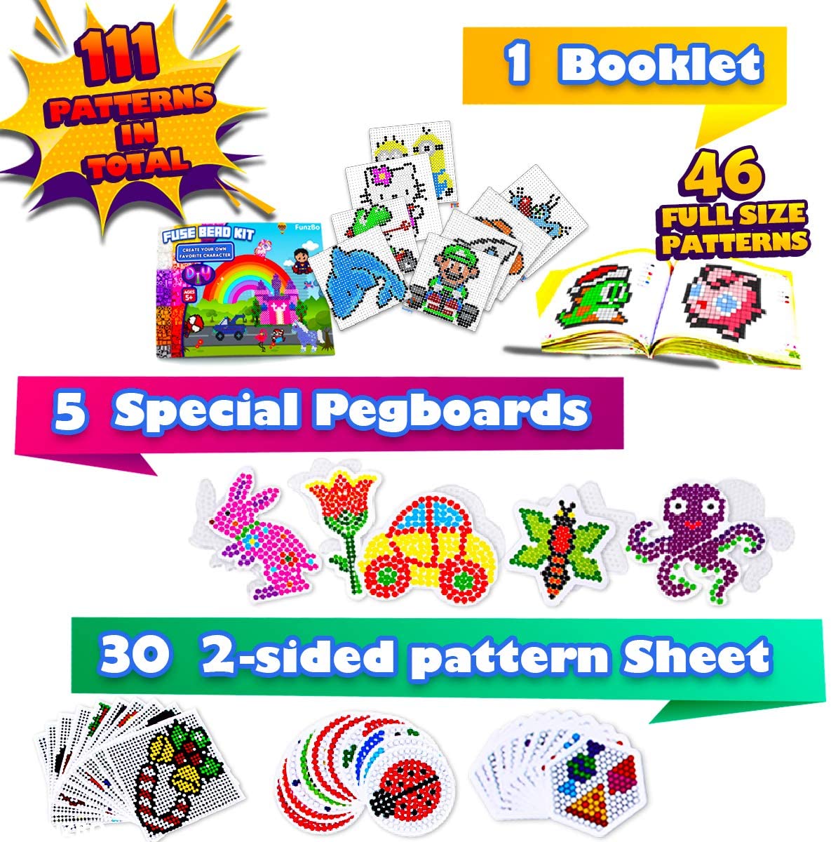 FunzBo Fuse Beads Craft Kit - 111 Patterns Melty Fusion Colored Beads Arts and Crafts Pearler Set for Kids - 5500 5mm Bead 9 pegboards for Boys Girls Age 5 6 7 Classroom Activity Gift (Large)