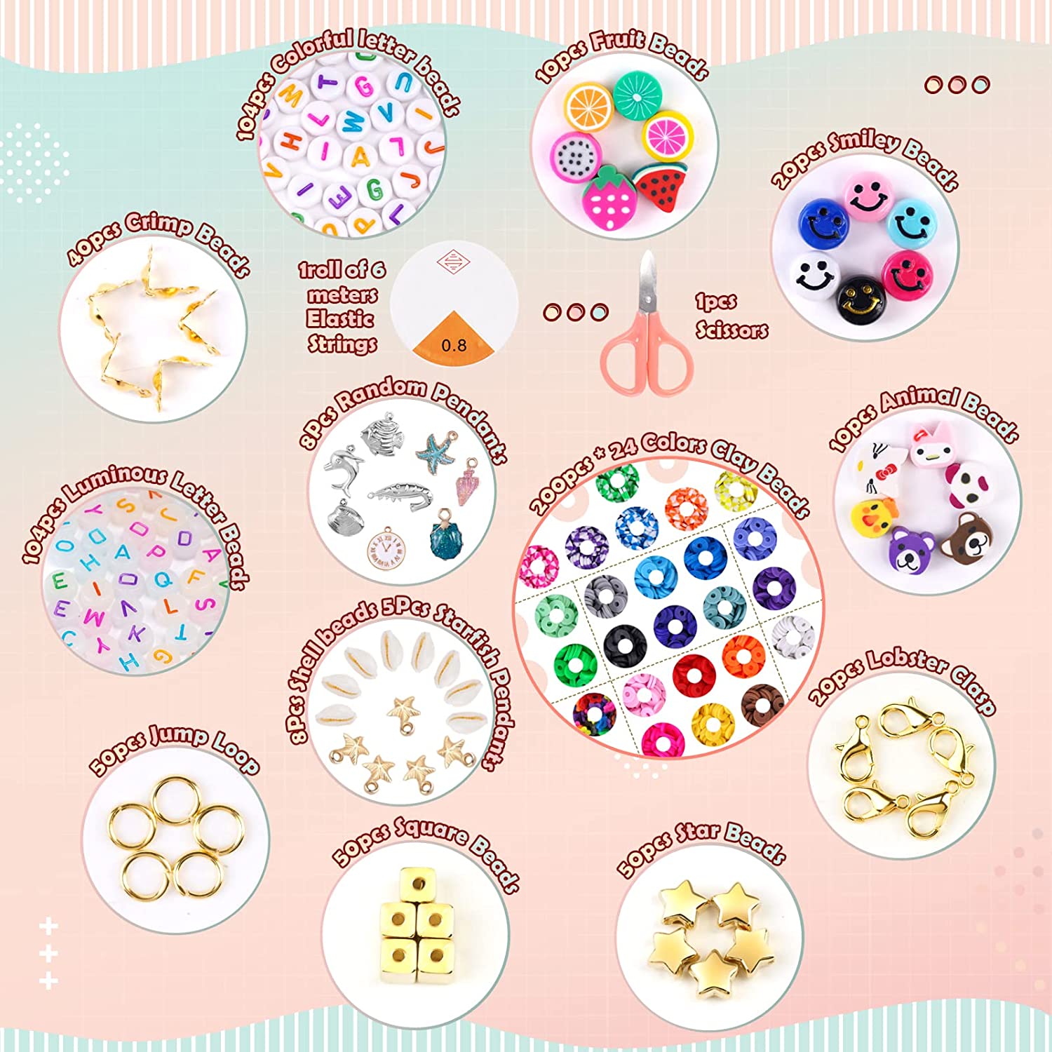 FZIIVQU Clay Heishi Beads Kit with Smiley Face Beads for Bracelets Making 5280+ Polymer Preppy Flat Clay Beads for Jewelry Making Set Lnclude UV Letter Beads & Fruit Animal Gold Star Spacer Beads etc