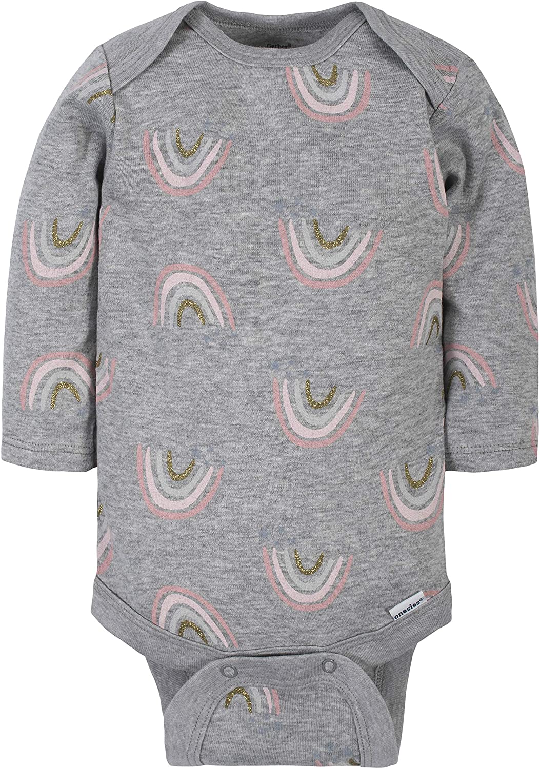 100% Cotton,India,Machine Wash,Includes six long sleeve bodysuits,Features an expandable lap shoulder neckline and high-positioned bottom snaps for easier changes,Perfect to mix and match,Art is screenprint, metallic print, and gold foil,Art is screenprint and glitter