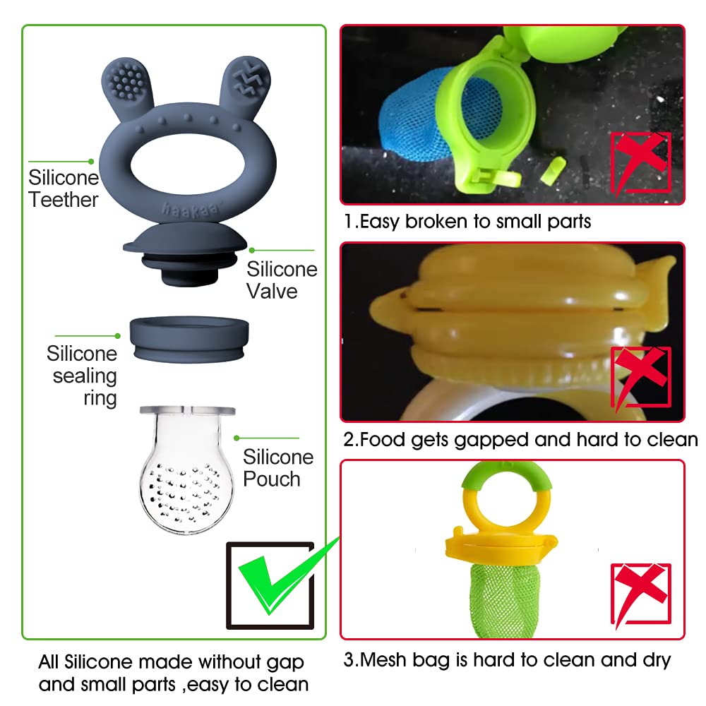 Haakaa Baby Fruit Food Feeder Pacifier | Milk Frozen Set | Silicone Feeder and Teether for Infant Safely Self Feeding, BPA Free Teething Relief Toy (Steel Blue)
