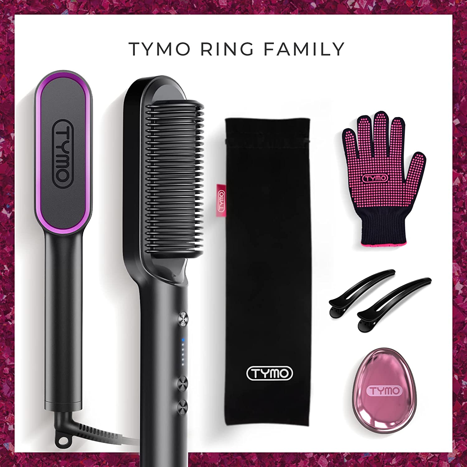 Hair Straightener Comb Matte Black, TYMO Hair Straightener Brush Straightening Comb for Women with 5 Temp 20s Fast Heating & Anti-Scald