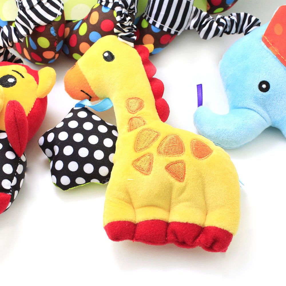 Multi-Use: Such cute toys can be easily wrapped around baby crib bed, stroller, carrier and car seat. It would be a great toy to coax the infant from crying to laughing.