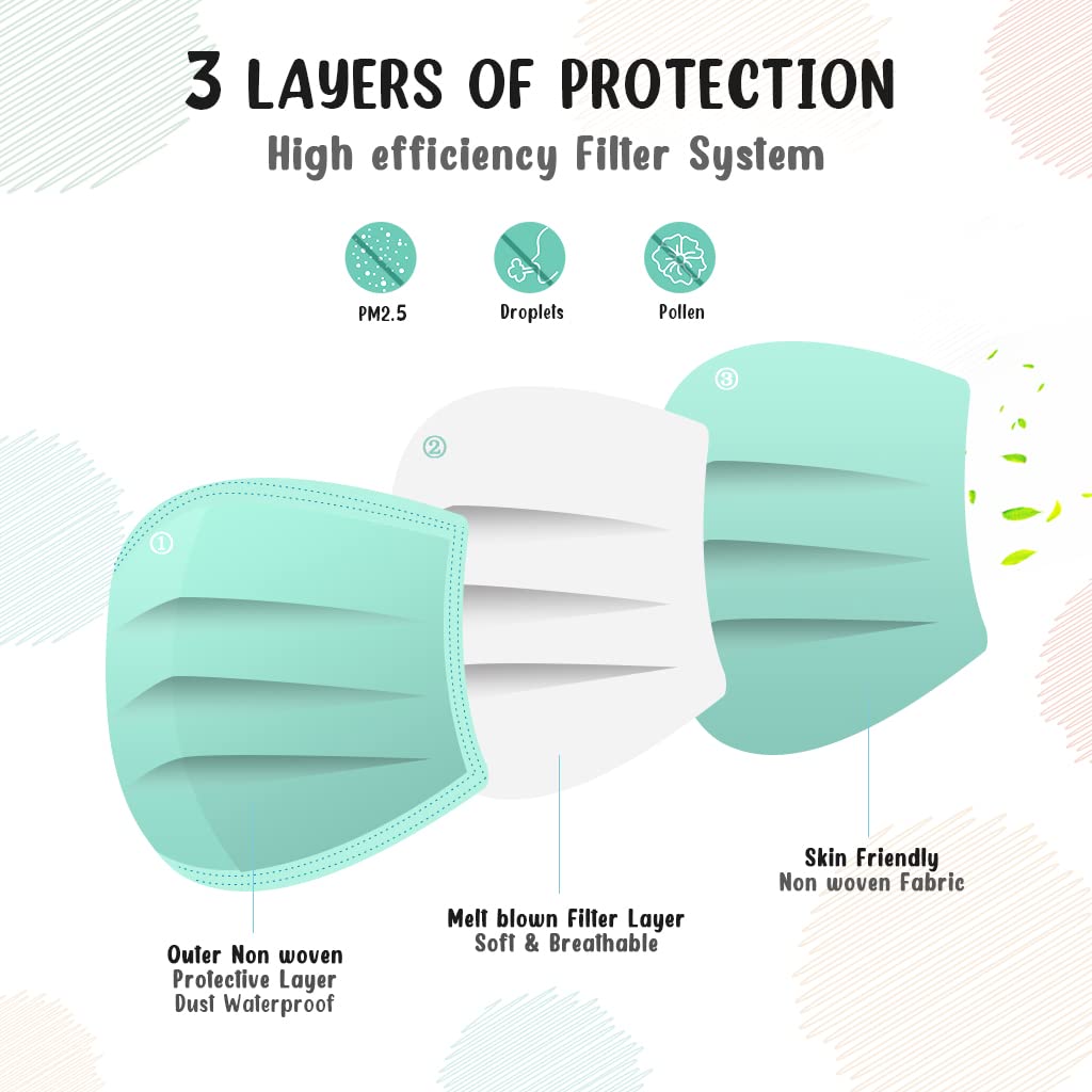 HIWUP 100Pcs Ten Colors Kids Disposable Face Masks for Childrens Face Mask Ages 4-12