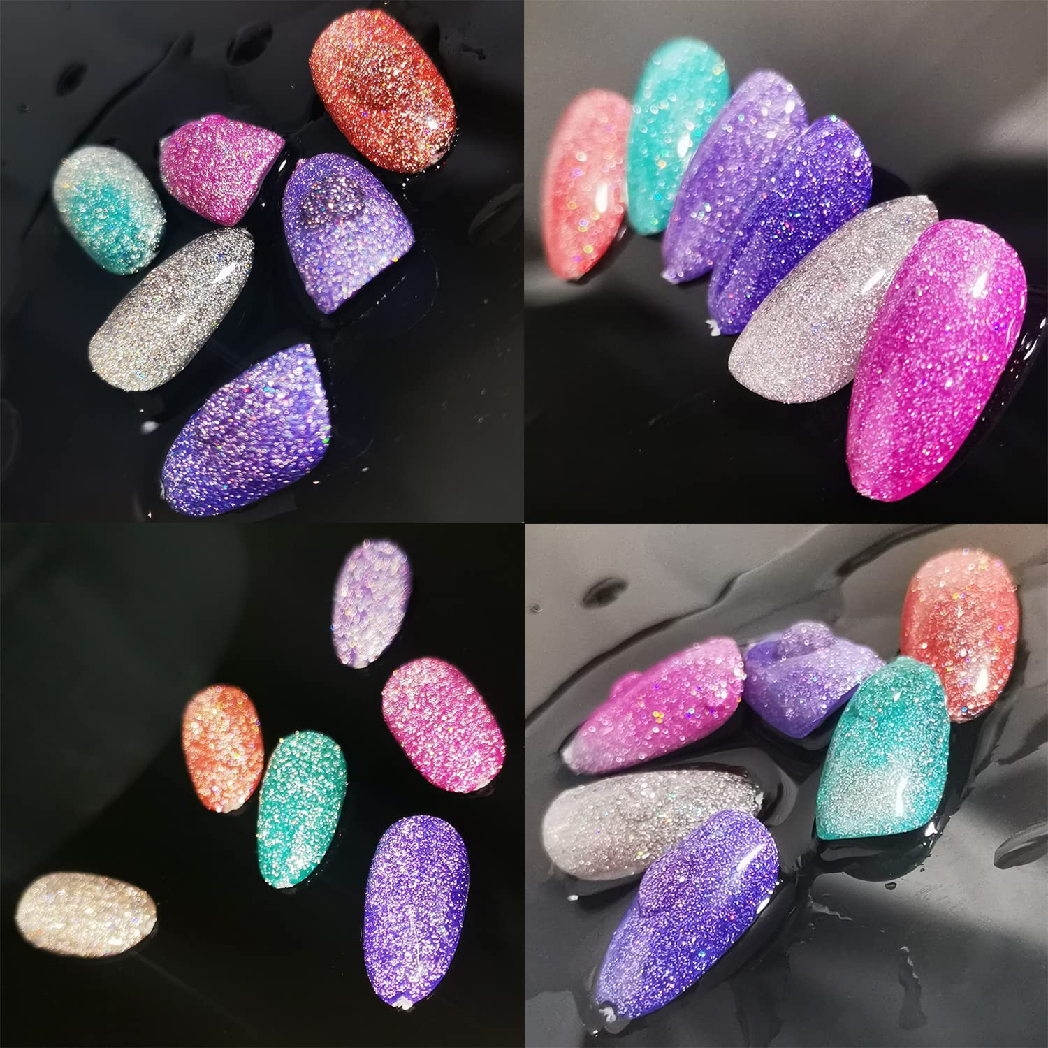 HOMOST Color Changing Reflective Glitter Diamond Gel Nail Polish Set, 6 Colors Glitter Gel Polish Reflective Pink Purple Blue Nail Polish Kit