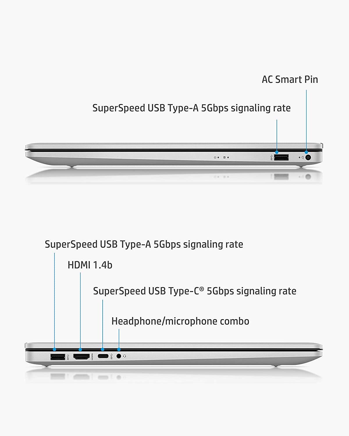 Thoughtfully crafted, the HP 17 Laptop PC blends sustainability with performance and comfort. Computing has never been more satisfying or comfortable with the lift-hinge design and enlarged click pad. It's not just the keyboard that’s comfortable but the display too; the 178 degree wide-viewing angles and the anti-glare screen make every visual experience a memorable one on a FHD IPS display (1). Enjoy reliable performance and incredible graphics thanks to the perfect combination of the 11th Generation Intel® Core™ i5-1135G7 processor and Intel® Iris® Xe Graphics (2) (3). Get all the storage you need and the high bandwidth you crave courtesy of your laptop computer’s 512 GB of Solid-State Drive storage and 8 GB of RAM (4) (5). Beyond the hardware, this HP laptop has many more features to take your work and play to new levels of comfort. Don’t stress about battery life again with up to 8 hours and 15 minutes to play with (6), plus the added benefit of HP Fast Charge technology for quicker recharges when you need it (7). Get right to work with the Windows 10 operating system you know and love and enjoy a greater peace of mind thanks to the HP 1-year limited hardware warranty (8). Your internet is smooth, stable, and supports an ultra-fast gigabit data rate with a Wi-Fi 6 (1x2) and Bluetooth® 5.2 combo (9) (10). Keep up the productivity, even while you work from anywhere. This Windows laptop has everything you need for expert video calls from the HP TrueVision HD camera to the custom-tuned dual speaker setup (11). Additional integrated features like the fingerprint reader and the backlit keyboard ensure your workspace is secure and comfortable, wherever or whenever you work (12). Do your part toward a sustainable future with an environmentally responsible laptop. Eco-conscious materials like ocean-bound plastic are used in the construction of the cover, bezel, and speaker enclosure (13). The outer boxes and fiber cushions used in the packaging are 100% sustainably sourced and recyclable (14). The HP 17.3 laptop is also ENERGY STAR® certified and EPEAT® Silver registered (15) (16). (1) Full High Definition (FHD) content is required to view FHD images. (2) Multi-core is designed to improve the performance of certain software products. Not all customers or software applications will necessarily benefit from the use of this technology. Performance and clock frequency will vary depending on the application workload and your hardware and software configurations. Intel’s numbering, branding, and/or naming is not a measurement of higher performance. Intel, Pentium, Intel Core, Celeron, Iris Xe, Intel logo, and the Intel Inside logo are trademarks of Intel Corporation in the U.S. and other countries. (3) Shared video memory (UMA) uses part of the total system memory for video performance. System memory dedicated to video performance is not available for other use by other programs. (4) Actual formatted capacity is less. A portion of internal storage is reserved for preloaded content. (5) Based on HP internal testing using CrystalDiskMark benchmarking software. Performance is sequentially faster (read-only) compared to traditional 5,400 rpm HDD. (6) Windows 10 MobileMark 18 battery life will vary depending on various factors including product model, configuration, loaded applications, features, use, wireless functionality, and power management settings. The maximum capacity of the battery will naturally decrease with time and usage. See bapco.com/products/mobilemark-2018/ for additional details. (7) Recharges your battery up to 50% within 45 minutes when the system is off (using the “shutdown” command). Recommended for use with the HP adapter provided with the notebook, not recommended with a smaller capacity battery charger. After charging has reached 50% capacity, charging speed will return to normal speed. Charging time may vary +/-10% due to System tolerance. (8) Not all features are available in all editions or versions of Windows. Systems may require upgraded and/or separately purchased hardware, drivers, software, or BIOS update to take full advantage of Windows functionality. Windows 10 is automatically updated, which is always enabled. ISP fees may apply and additional requirements may apply over time for updates. See microsoft.com (9) Wireless access point and internet service required and sold separately. Availability of public wireless access points limited. Requires a wireless router, sold separately, that supports 80MHz channels. Wi-Fi 6 (802.11ax) is backwards compatible with prior 802.11 specs. The specifications for Wi-Fi 6 are draft and are not final. If the final specifications differ from the draft specifications, it may affect the ability of the notebook to communicate with other Wi-Fi 6 devices. Only available in countries where 802.11ax is supported. Based on Wi-Fi 5 80MHz and Wi-Fi 6 160MHz minimum requirements when transferring files between two devices connected to the same router. Requires a wireless router, sold separately, that supports 802.11ax (Wi-Fi 6). Only available in countries where 802.11ax is supported. (10) Bluetooth® is a trademark owned by its proprietor and used by Hewlett-Packard Company under license. (11) Features may require software or other 3rd party applications to provide the described functionality. Internet service required and not included. (12) Wireless access point and internet service required and sold separately. Availability of public wireless access points limited. (13) Percentage of ocean-bound plastic contained in each component varies by product. (14) 100% outer box/corrugated cushion packaging made from sustainably sourced certified and recycled fibers. Fiber cushions are made from 100% recycled wood fiber and organic material. Excludes plastic bags and plastic foam sheeting. (15) ENERGY STAR and the ENERGY STAR mark are registered trademarks owned by the U.S. Environmental Protection Agency. (16) Based on U.S. EPEAT