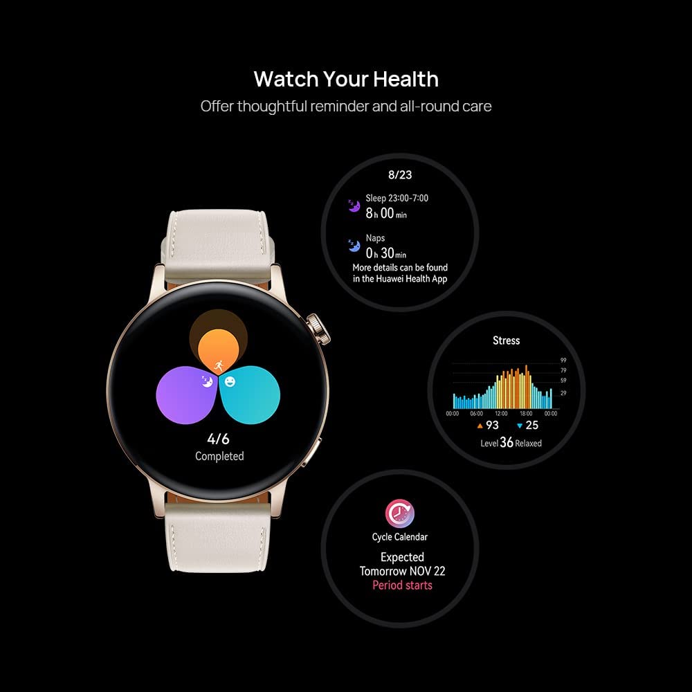 Huawei Watch GT 3 (46mm) is a fashionable smart wristband that can be used as a bluetooth headset and help you better understand your physical health and sleep quality with integrated features such as fitness tracker, message reminder, and bluetooth calling, it is the perfect companion for smartphones.