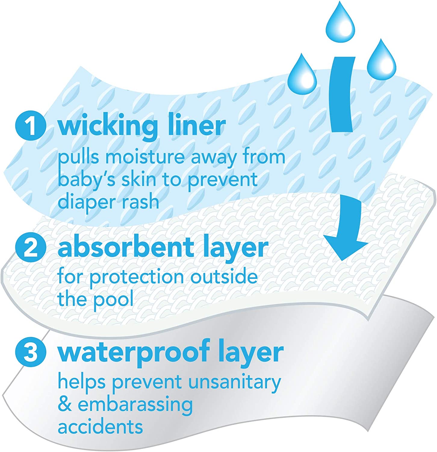 i play. by green sprouts is the original swim diaper manufacturer and has a patented three-layer design. The wicking liner helps prevent diaper rash, the inner absorbent layer helps protect against messes outside the pool, and the waterproof outer layer works with the snug-fitting waist and legs to provide secure protection from unsanitary and embarrassing accidents in the pool.