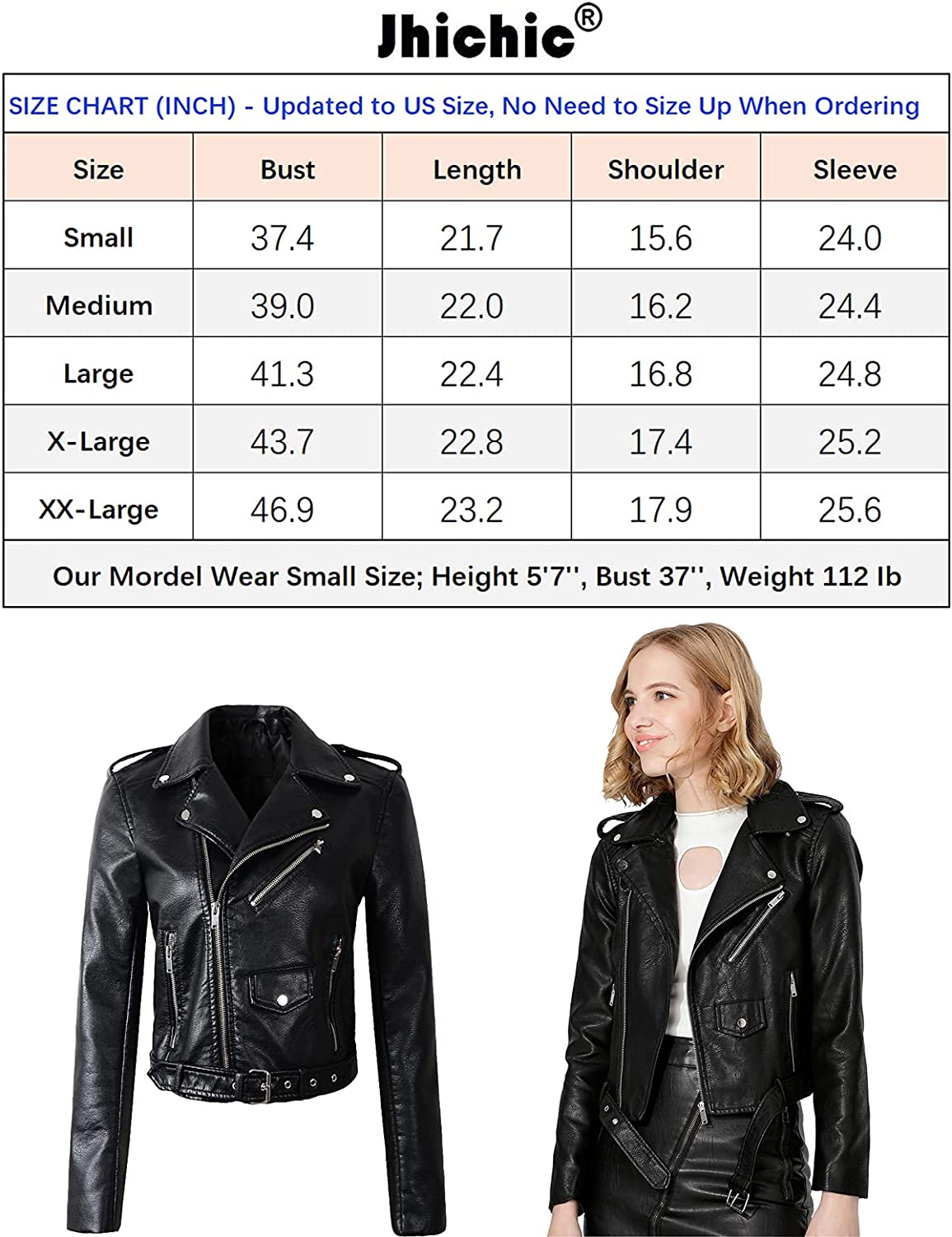 Jhichic Women's Faux Leather Textured Short Moto Jacket Zip-up Slim PU Biker Coat with Pockets