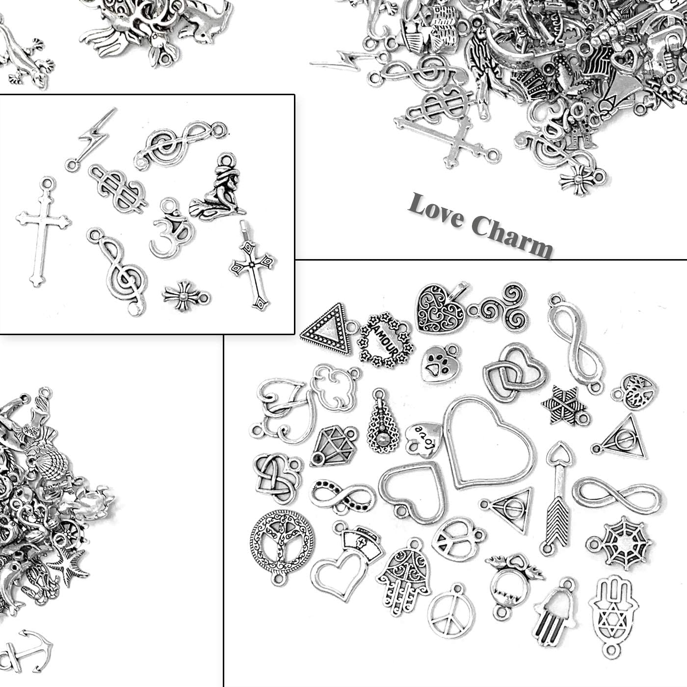 JIALEEY Charms for Jewelry Making 300 Pieces Wholesale Bulk Lots, Mixed Smooth Tibetan Silver Charms Pendants for DIY Necklace Bracelet Jewelry Making Crafting
