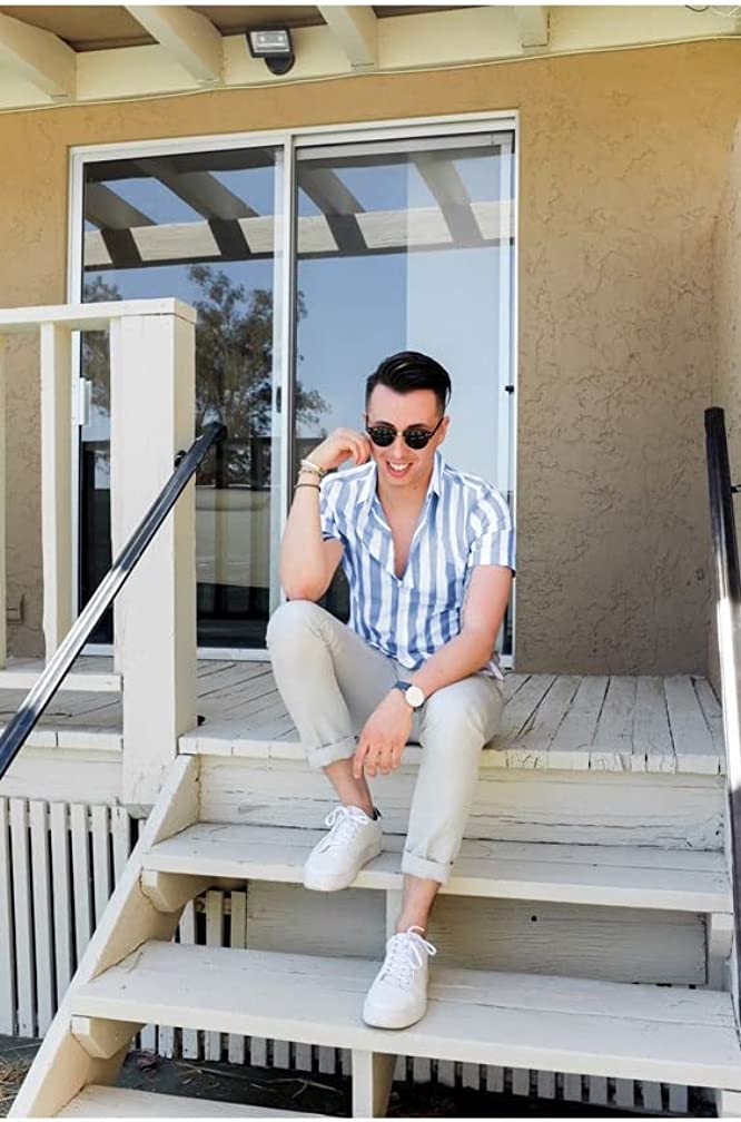 JMIERR Men's Casual Short Sleeve Button-Up Striped Dress Shirts Cotton Shirt