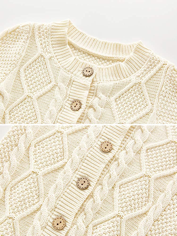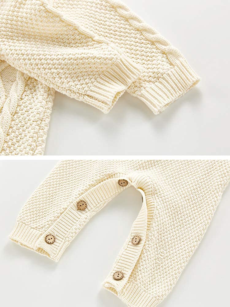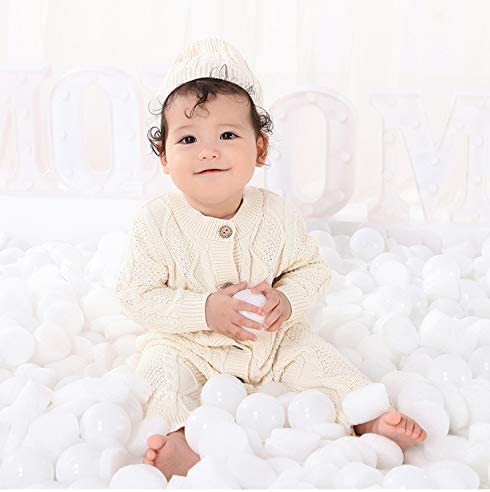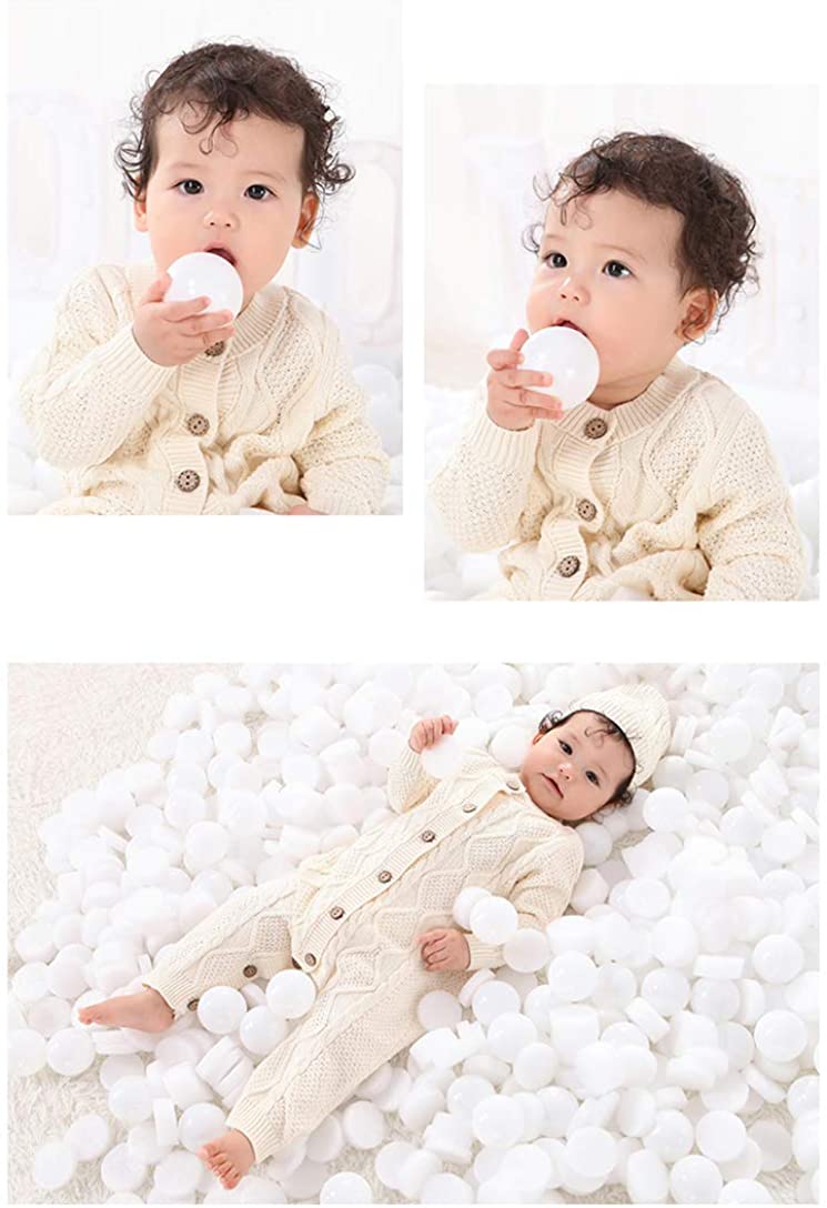 JunNeng Baby Newborn Cotton Knitted Sweater Romper Longsleeve Outfit with Warm Hat Set