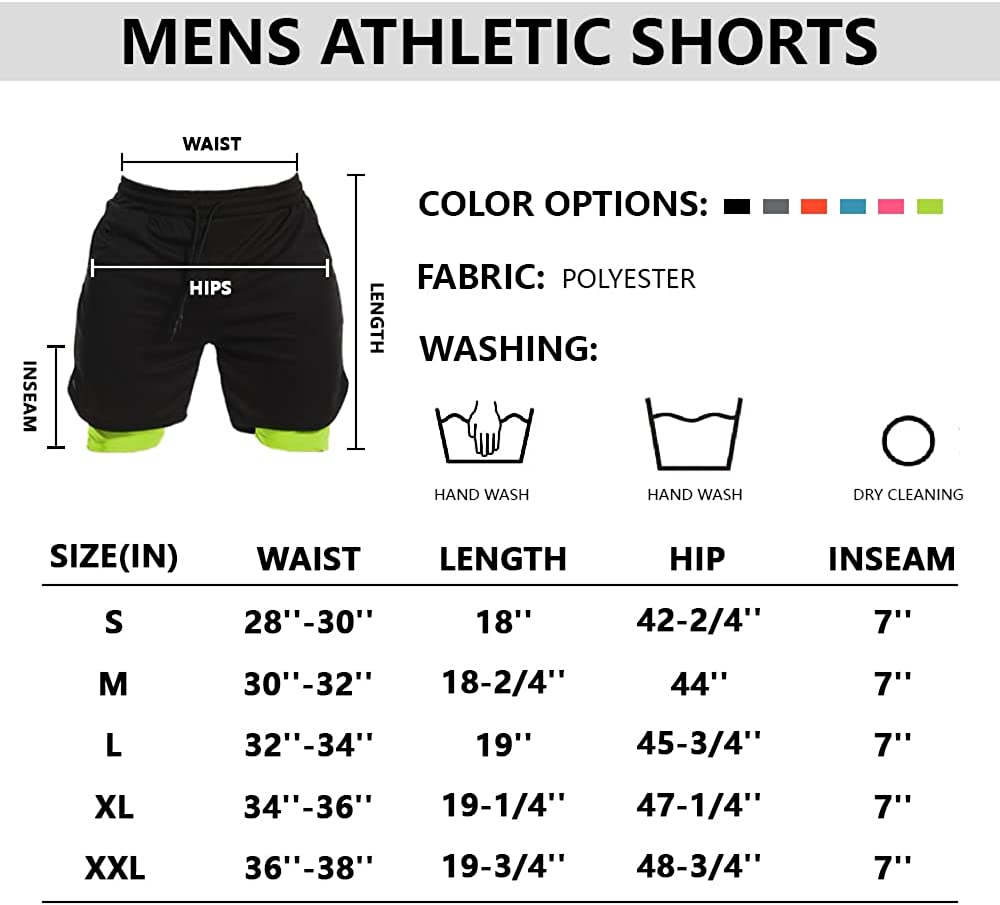 JWJ Mens 2 in 1 Running Shorts Quick Dry Gym Athletic Workout Clothes with Side Pockets
