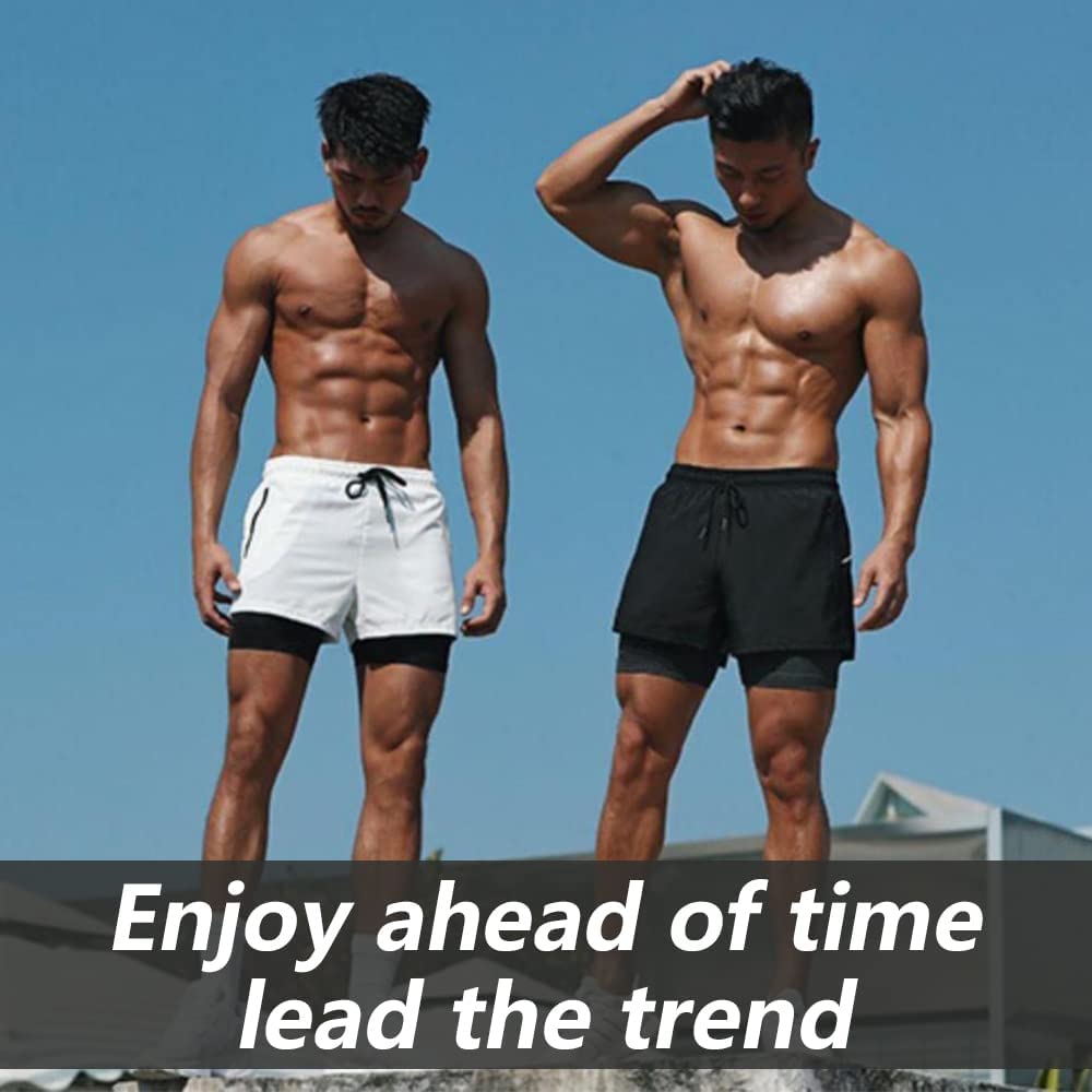 JWJ Men's Running Athletic Workout Sports Mens 2 in 1 Shorts Breathable Gym Short for Men with Pocket