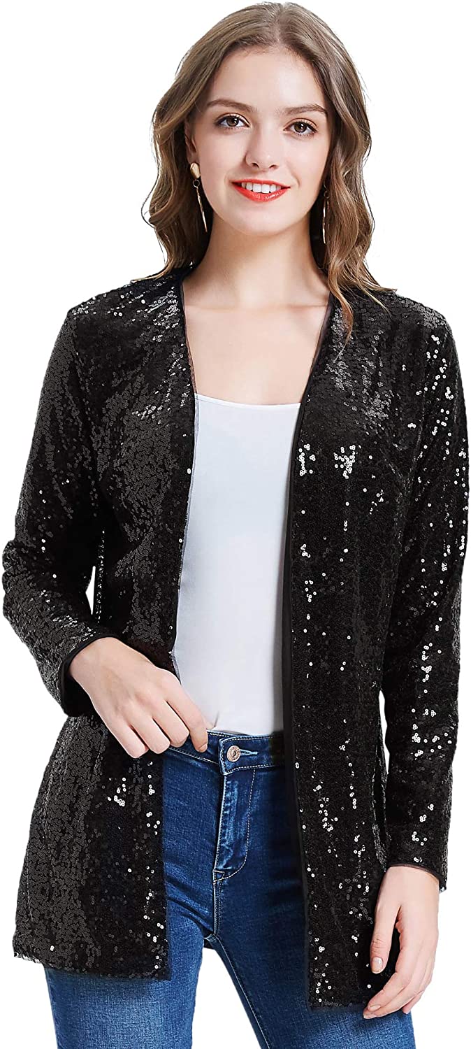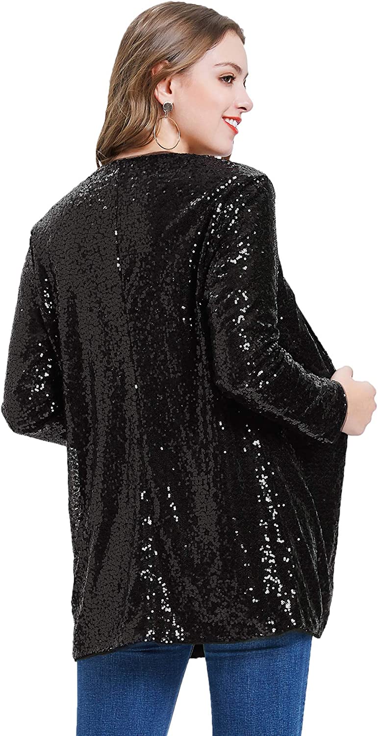 KANCY KOLE Women's Sequin Jacket Open Front Blazer Casual Long Sleeve Cardigan Coat S-XXL