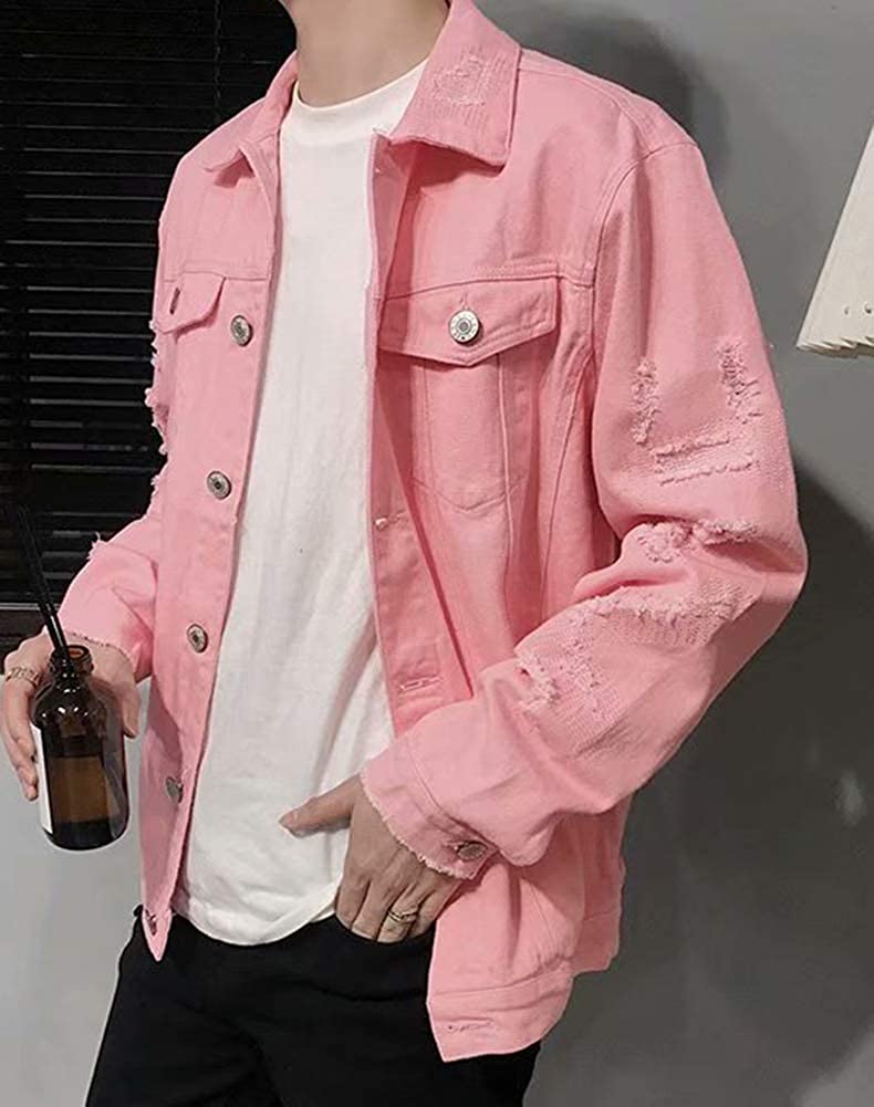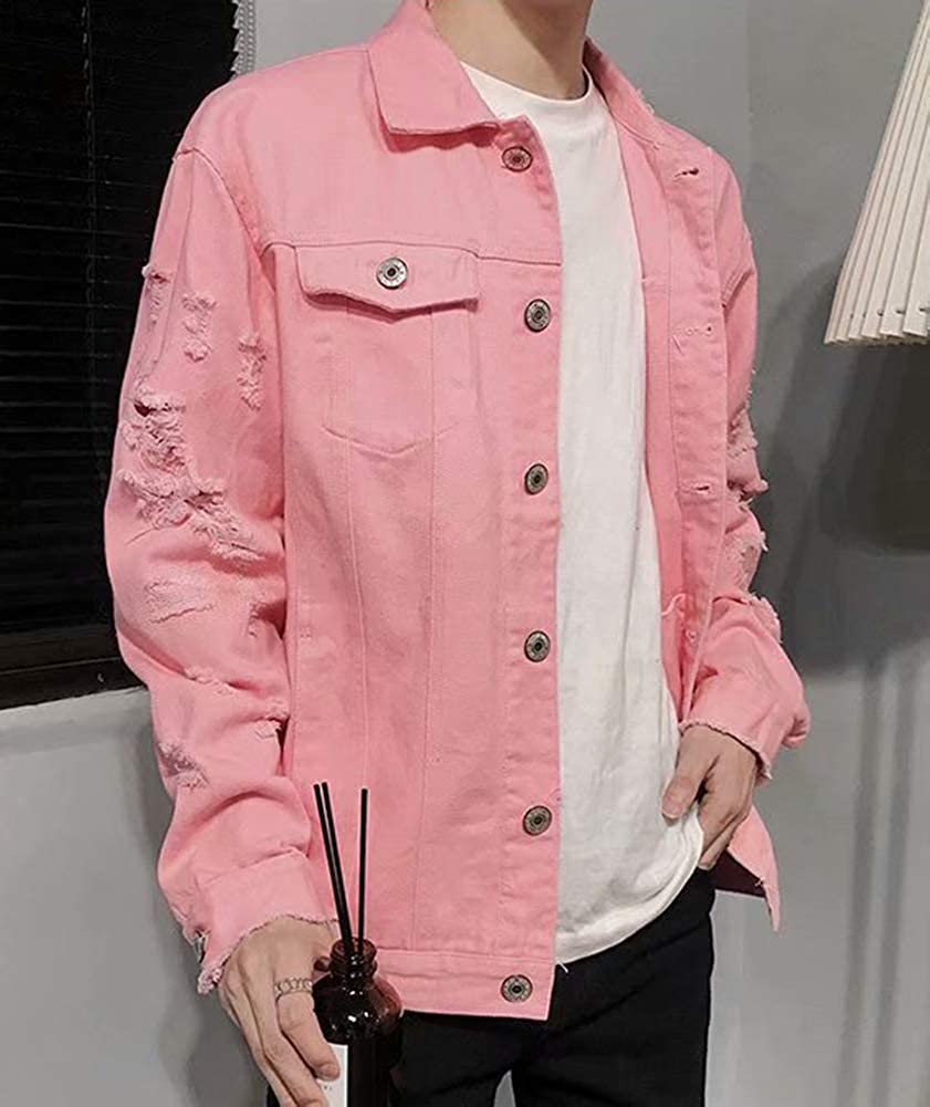 Kedera Distressed Denim Jacket Men's Button Down Denim Jacket Trucker Jean Coat
