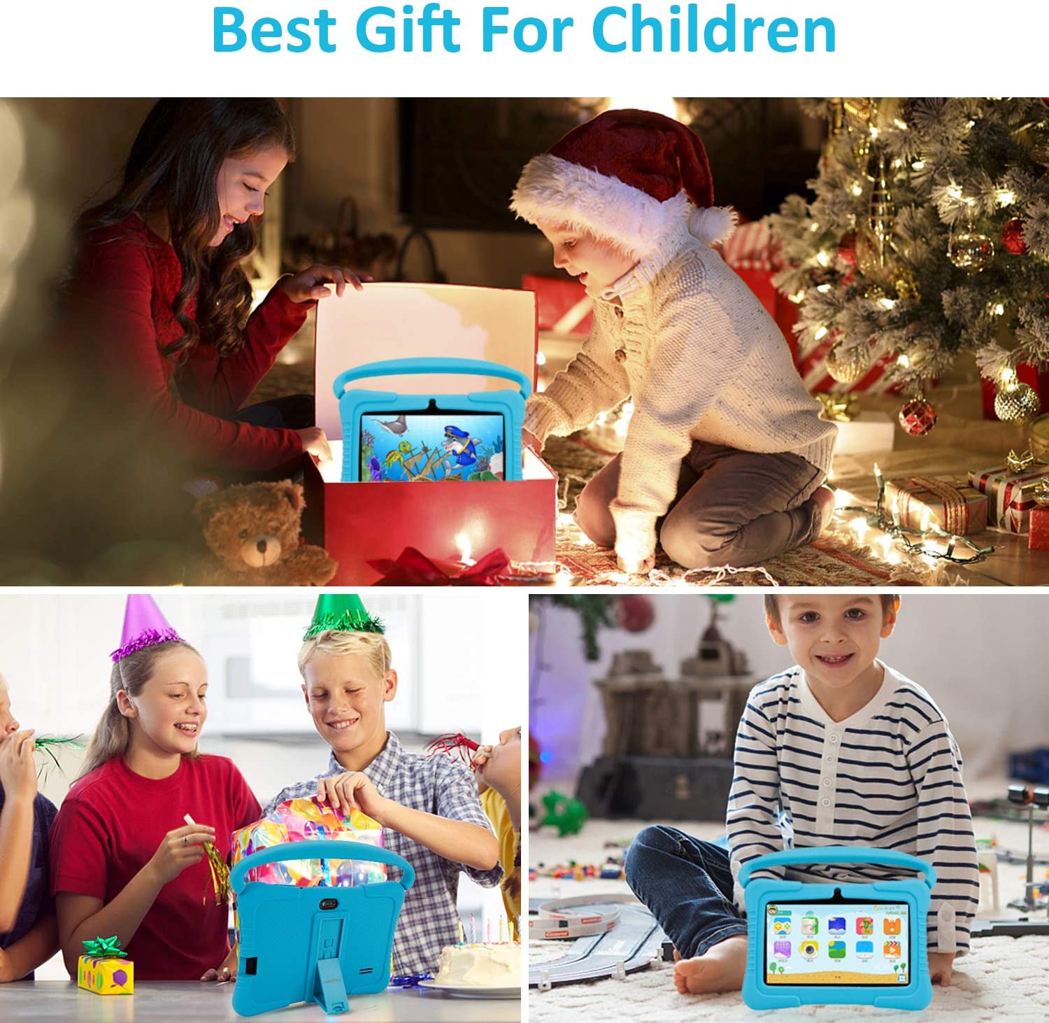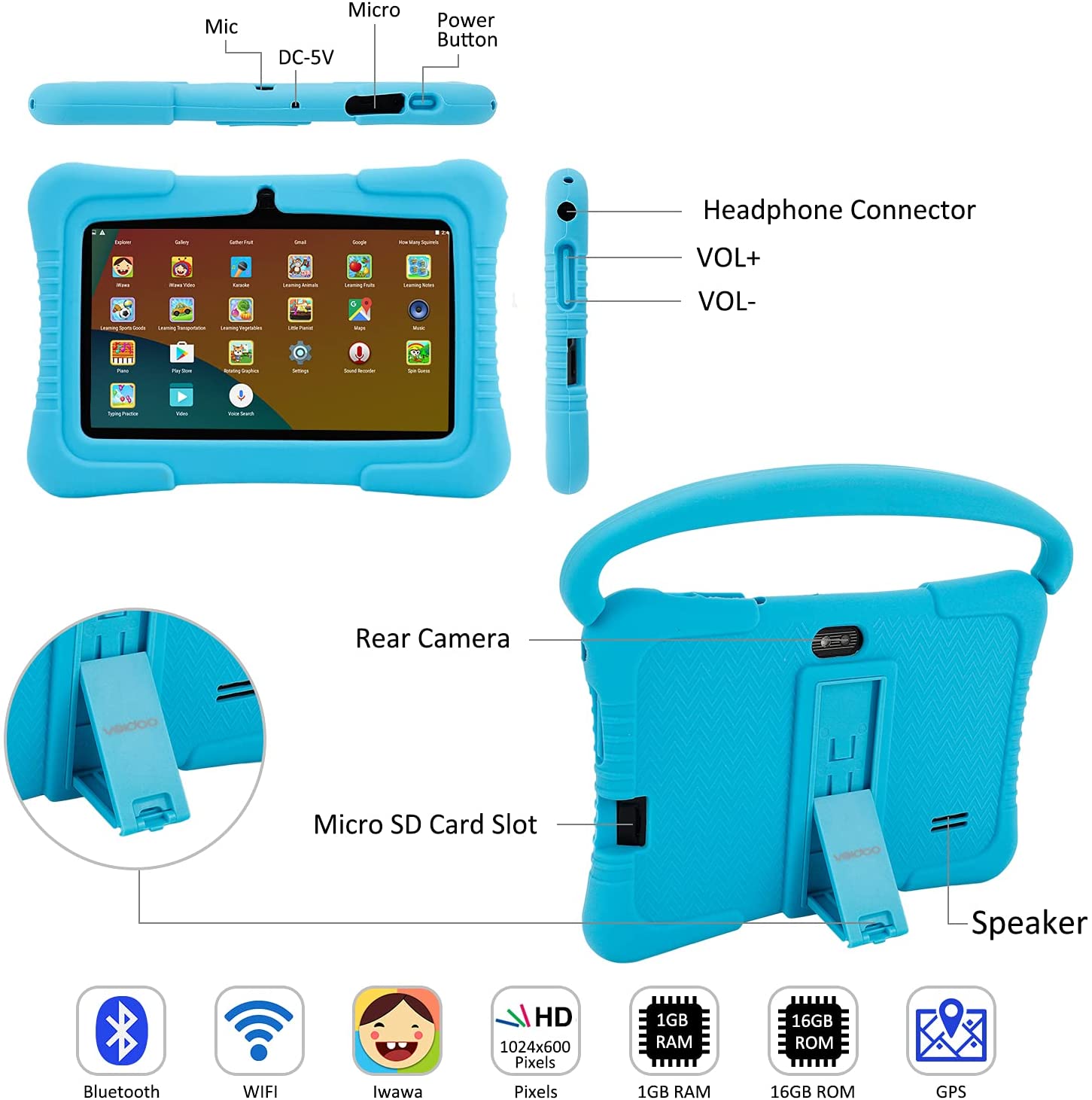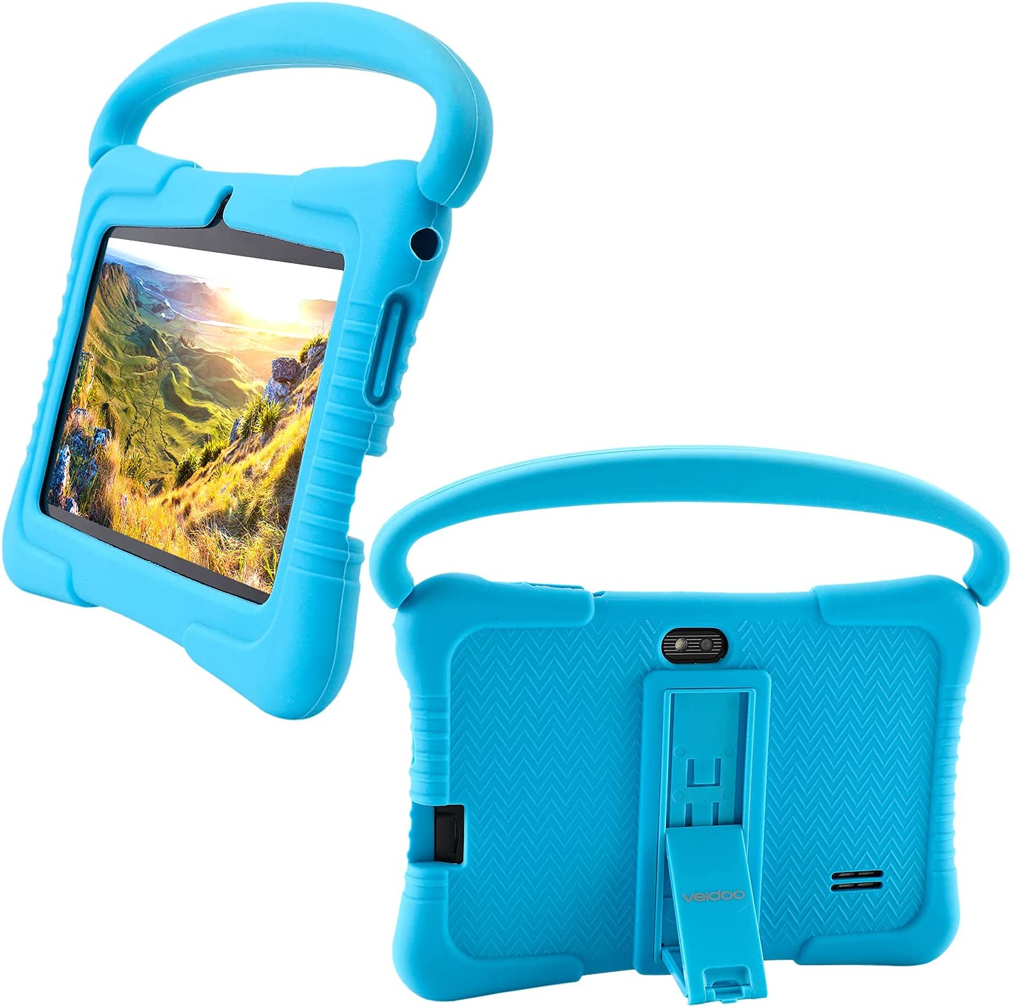 Kids Tablet, Veidoo 7 inch Android Tablet PC, 1GB RAM 16GB ROM, Safety Eye Protection Screen, WiFi, Bluetooth, Dual Camera, Educational, Games, Parental Control APP, Tablet with Silicone Case (Blue)