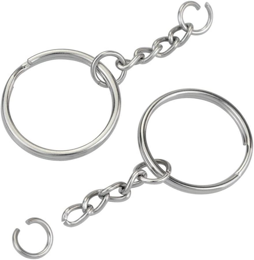 KINGFOREST 100PCS Split Key Ring with Chain 1 inch and Jump Rings,Split Key Ring with Chain Silver Color Metal Split Key Chain Ring Parts with Open Jump Ring and Connector.