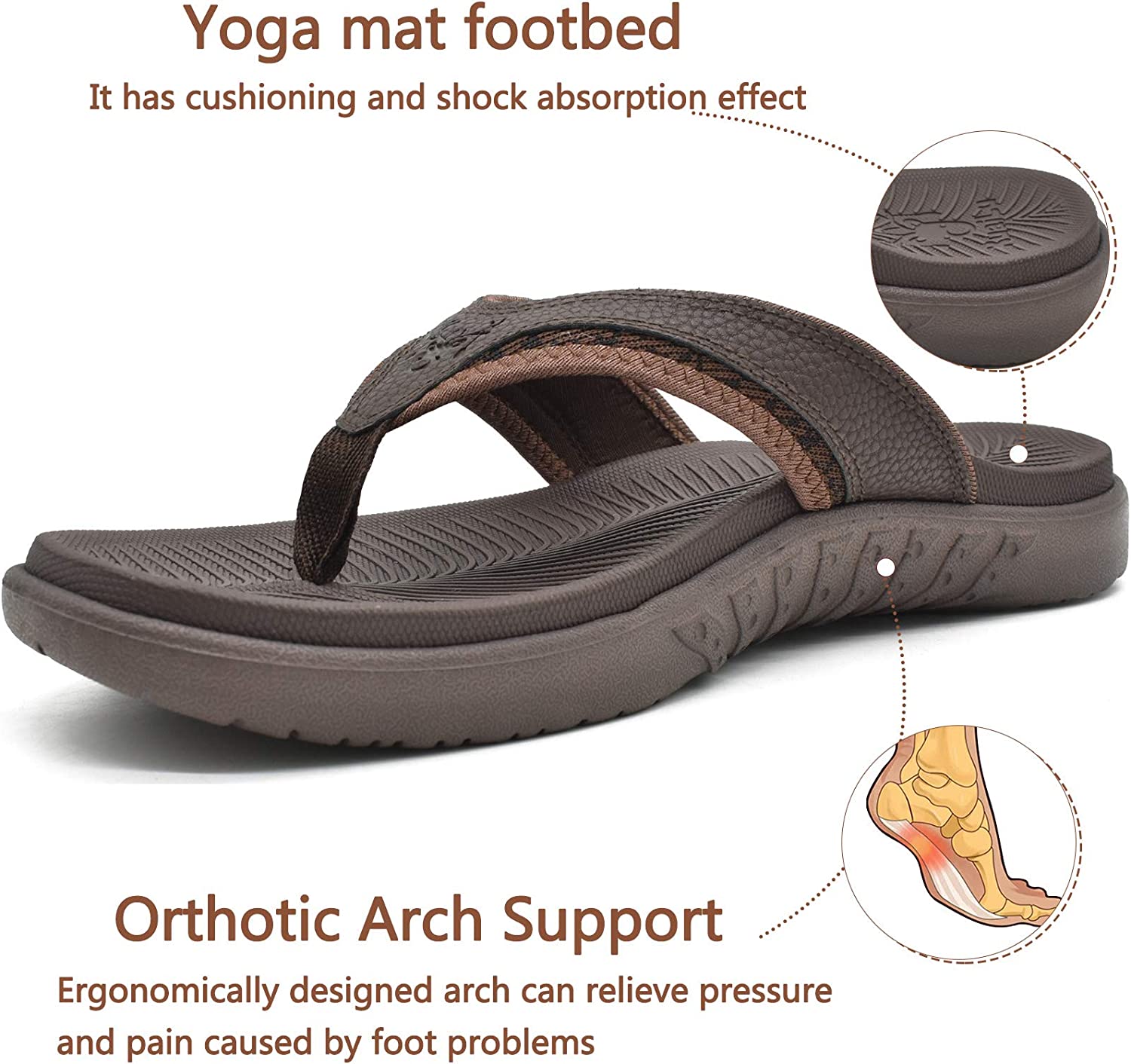 KuaiLu Mens Sport Flip Flops Comfort Orthotic Thong Sandals with Plantar Fasciitis Arch Support Outdoor Summer Beach Size 7~13