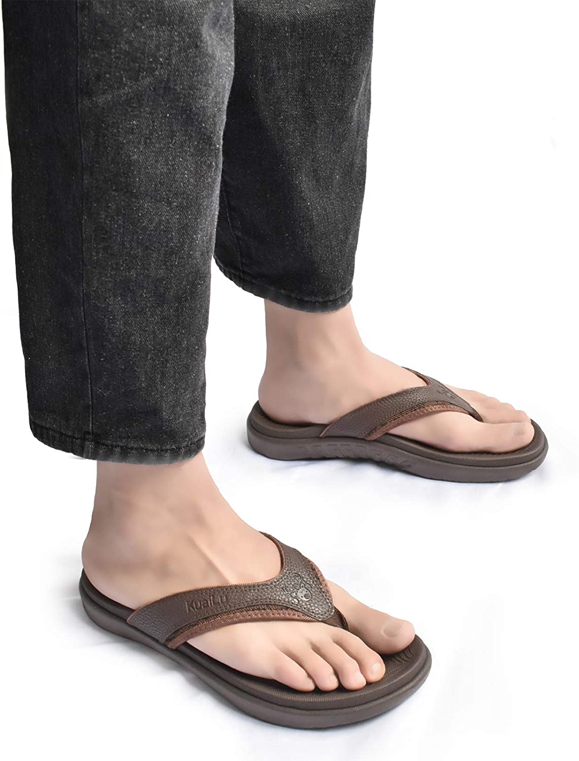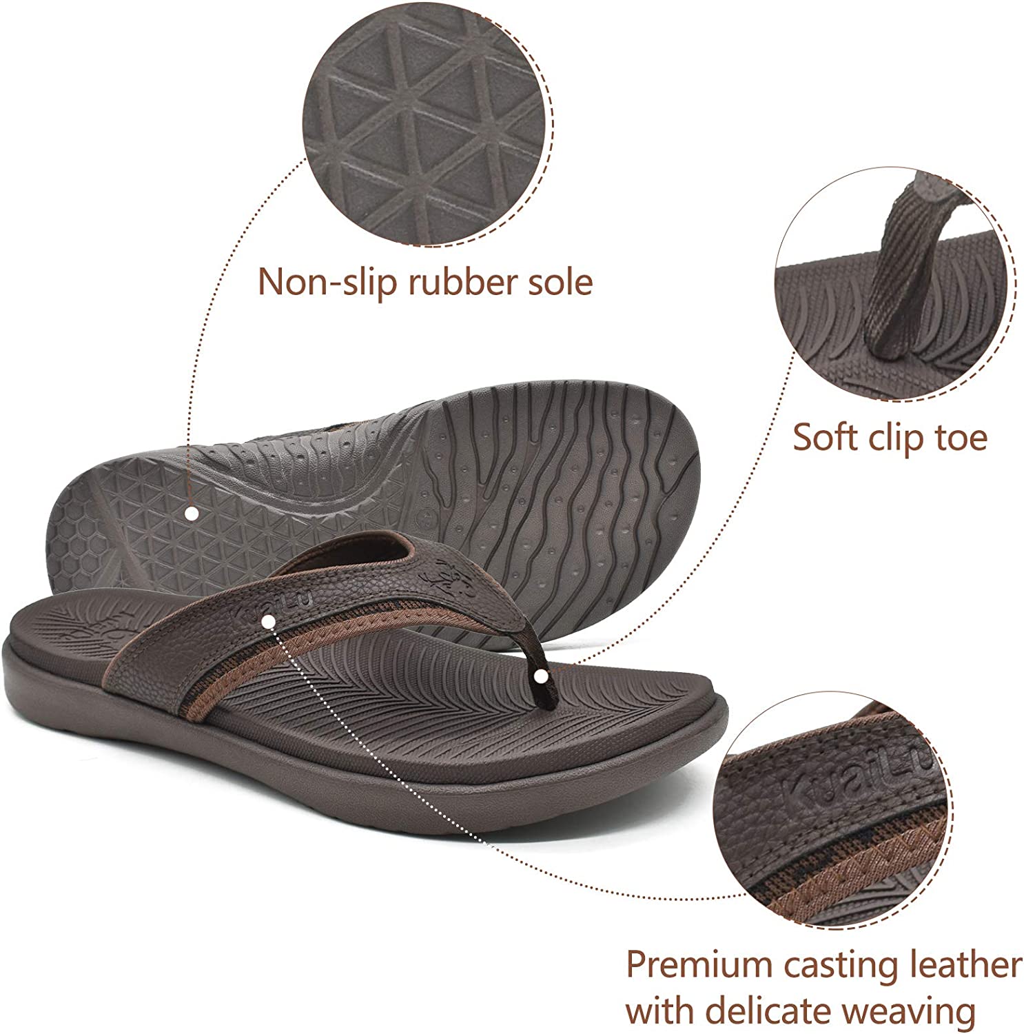 KuaiLu Mens Sport Flip Flops Comfort Orthotic Thong Sandals with Plantar Fasciitis Arch Support Outdoor Summer Beach Size 7~13