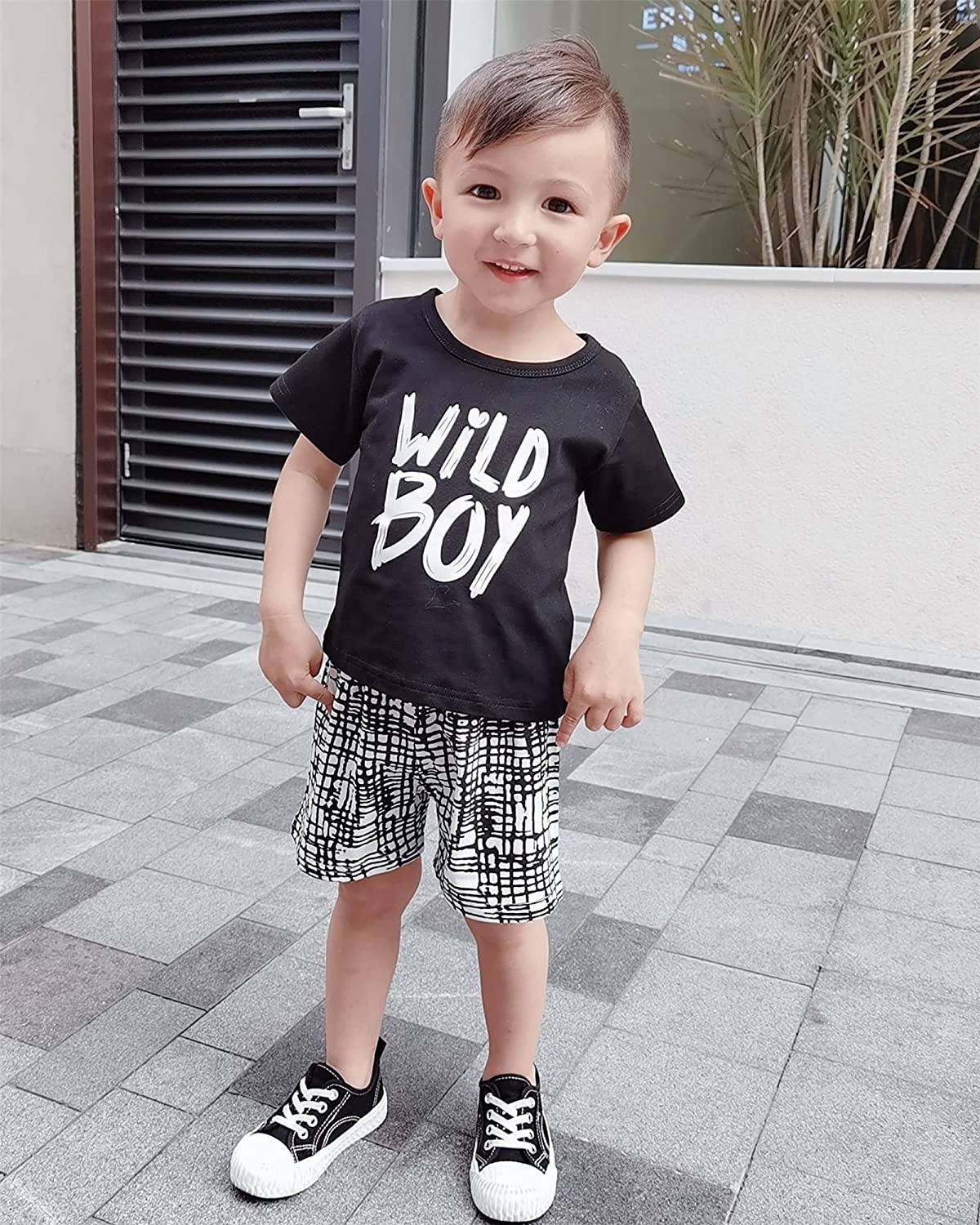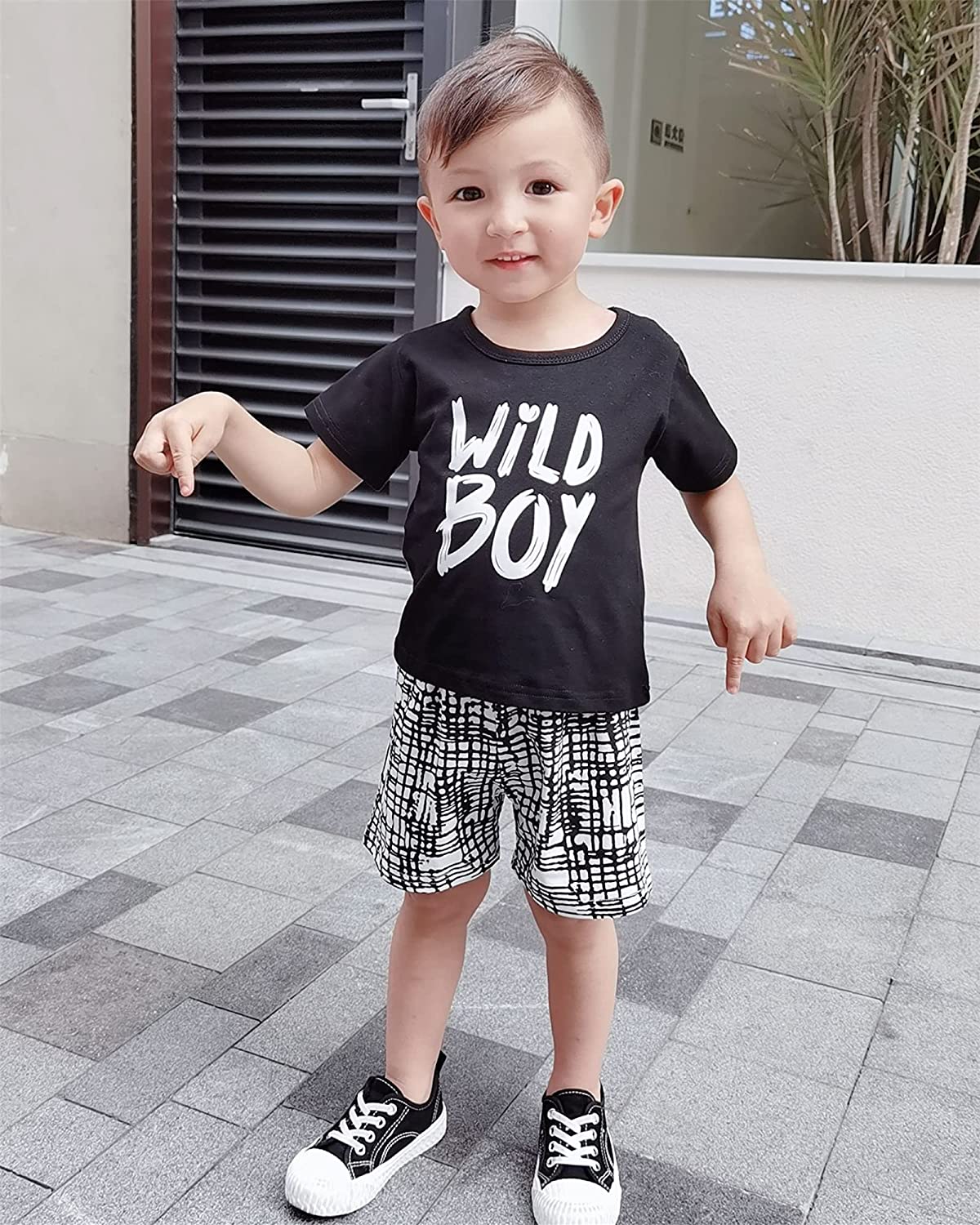 Kucnuzki Toddler Baby Boy Clothes Outfits Short Summer Sleeve Letters Printed Shirt Shorts Sets 2PC Little Boy Clothing
