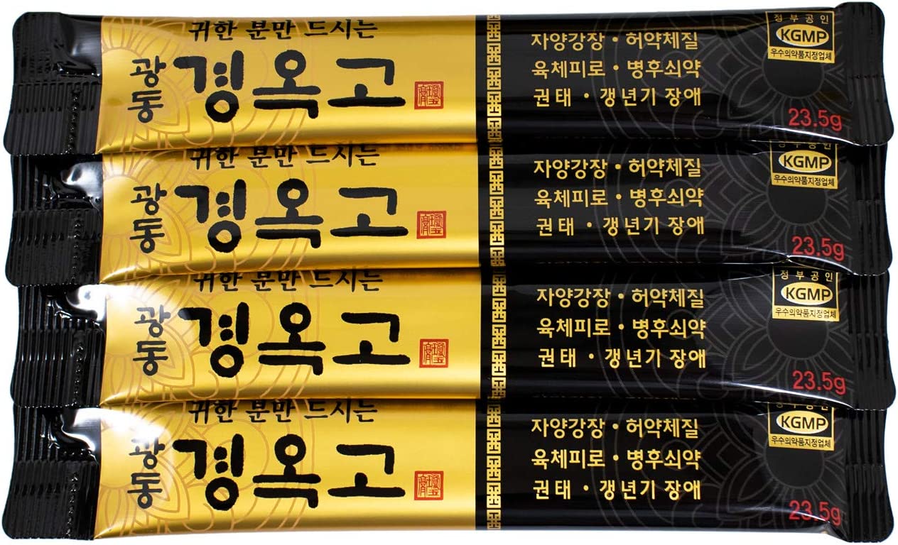 Kwang-Dong Kyung-Ok-Go Korean Nutritious Ginseng Tonic Individual Stick Pouches Gift Set (23.5g x 60 Stick Pouches) [광동제약 경옥고] + Korean Mulberry Paper HANJI Card for Gift Messages