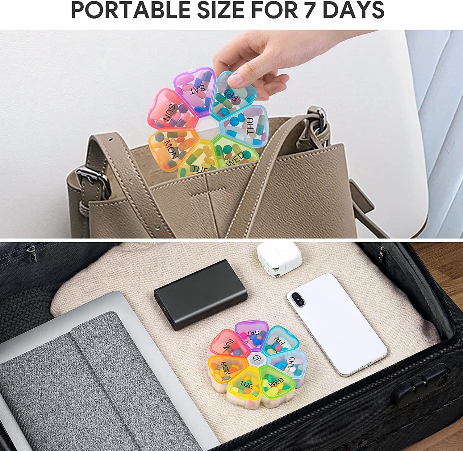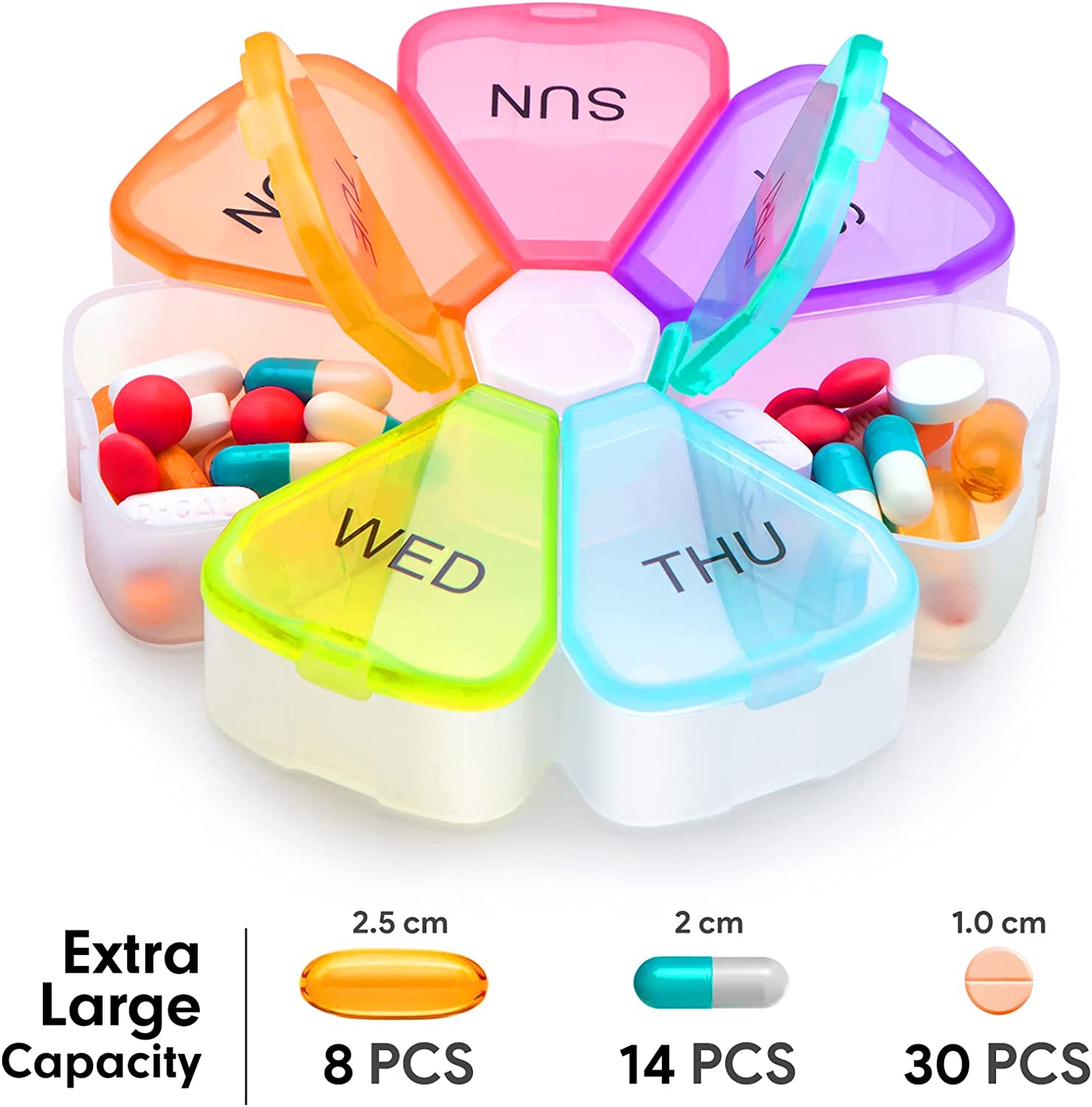 Large Weekly Pill Organizer, OAAO XL 7 Day Portable Pill Box Case for Vitamin, Cod Liver Oil, Pills, Supplements, Flower Medicine Organizer-Arthritis Friendly