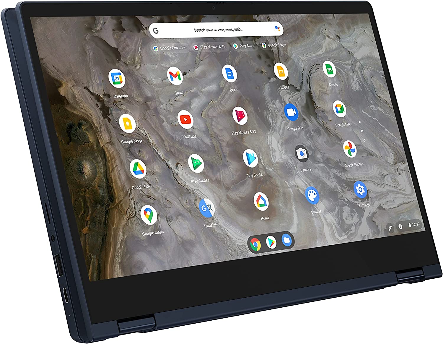 Hit the ground running with the IdeaPad Flex 5i Chromebook, one of the most versatile Chromebooks on the market. This 13" notebook computer merges accessibility with power, with an 11th Generation Intel® Core™ i3 processor to handle even the most arduous tasks without a hint of strain. With the slim and light 360° convertible design, you can use it as a laptop, in tablet mode for an intuitive touchscreen experience, or in stand or tent mode to show off your latest photo slideshow or stream your favorite movies. The 10 hours* of battery life means that you can take it with you wherever you go without worry while playing games or browsing the Internet via WiFi. The IdeaPad Flex 5i Chromebook is designed with a physical privacy shutter. When you're not on a video call, simply slide the shutter over the webcam to secure your privacy. And as a Chromebook, you can quickly access all your files, photos, music, and more with ease – just login to your Google account and you're ready to go! Talk to Google to help you multitask, control your smart home devices, and manage your day. Stay connected with built-in WiFi and Bluetooth®, 2 USB-C ports, a USB-A port, a microSD™ card reader, and an audio combo jack.