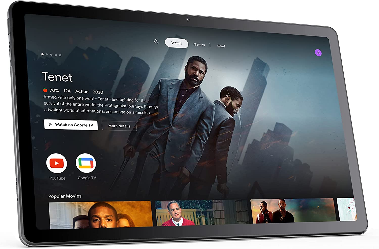 You can binge longer and study smarter with the Lenovo Tab M10 Plus 3rd Gen Android Tablet. Sleek, thin, and lightweight, this handy 10-inch tablet goes wherever you do, packing power and performance into a bold and contemporary aluminum chassis that's just 0.29" thin and as little as 1.03 lbs. Slip your Lenovo tablet into a shoulder bag, your school backpack, or carry it in folio case (available separately). The bright and colorful 10.6" display offers full HD clarity, so you can stream your favorite movies and shows for hours! Plus, with the special Reading Mode and TÜV Low Blue Light certification, you can enjoy long, comfortable hours of screen time on this Android tablet without straining your eyes. Music and audio sound great with the immersive quad speaker system optimized with Dolby Atmos®.